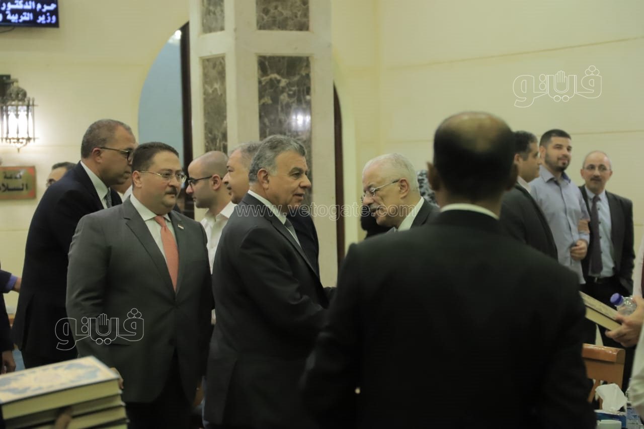 وسيطرت حالة من الحزن والألم على الدكتور طارق شوقي، وزير التربية والتعليم والتعليم الفني السابق، خلال تلقيه عزاء زوجته الدكتورة زينب المرشدي بمسجد المشير.