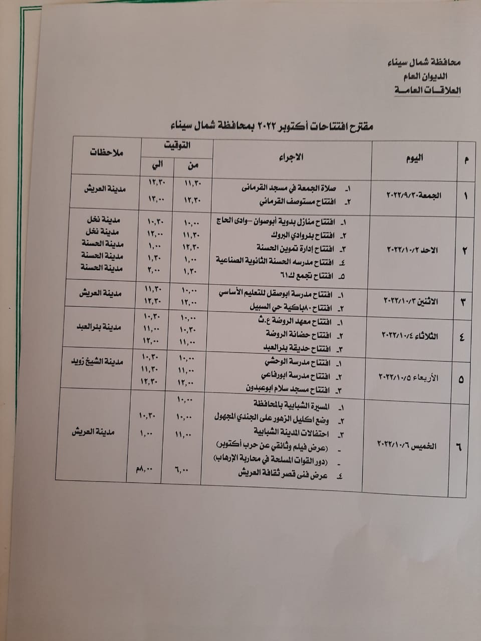 افتتاح 14 مشروعا في ذكرى انتصارات أكتوبر بشمال سيناء