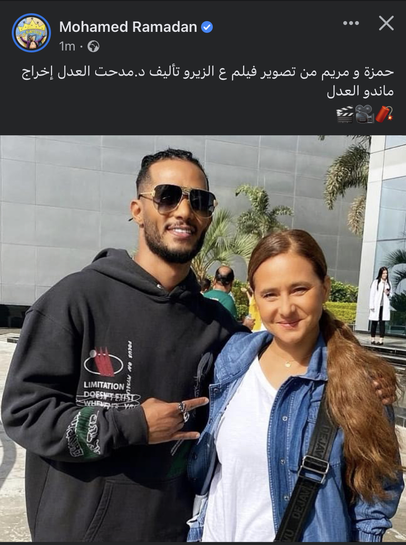 وعلق محمد رمضان على الصورة قائلا: "حمزة ومريم من تصوير فيلم ع الزيرو تأليف د.مدحت العدل إخراج ماندو العدل".