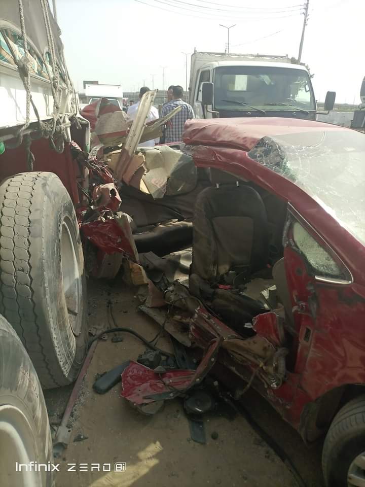 حرر محضر بالواقعة وتم رفع آثار الحادث من علي الطريق وتسيير حركة المرور مرة أخرى. وتم اتخاذ الإجراءات القانونية اللازمة.