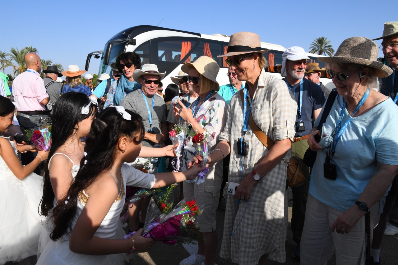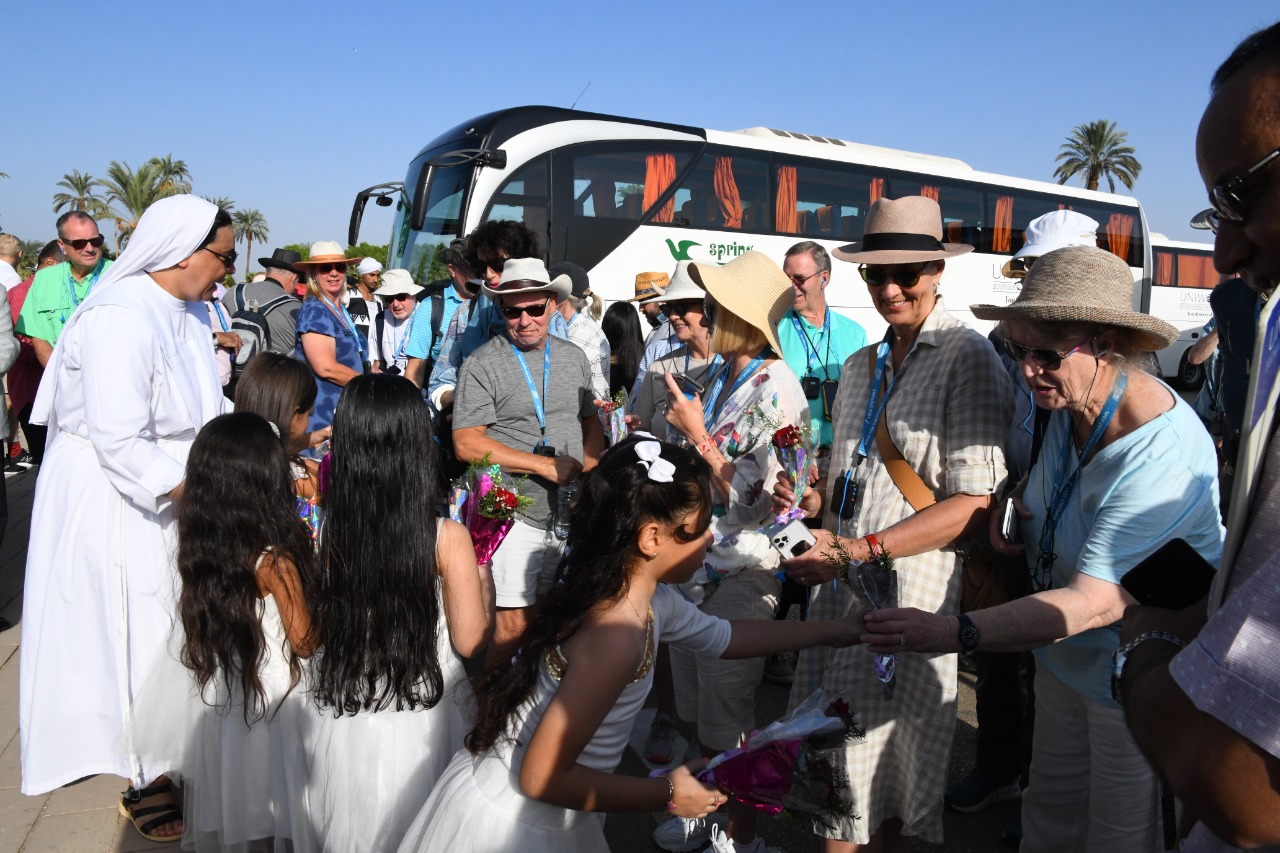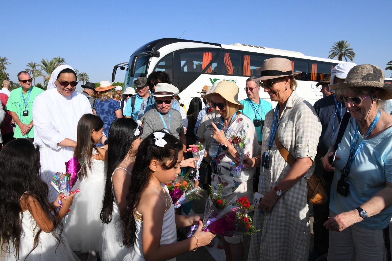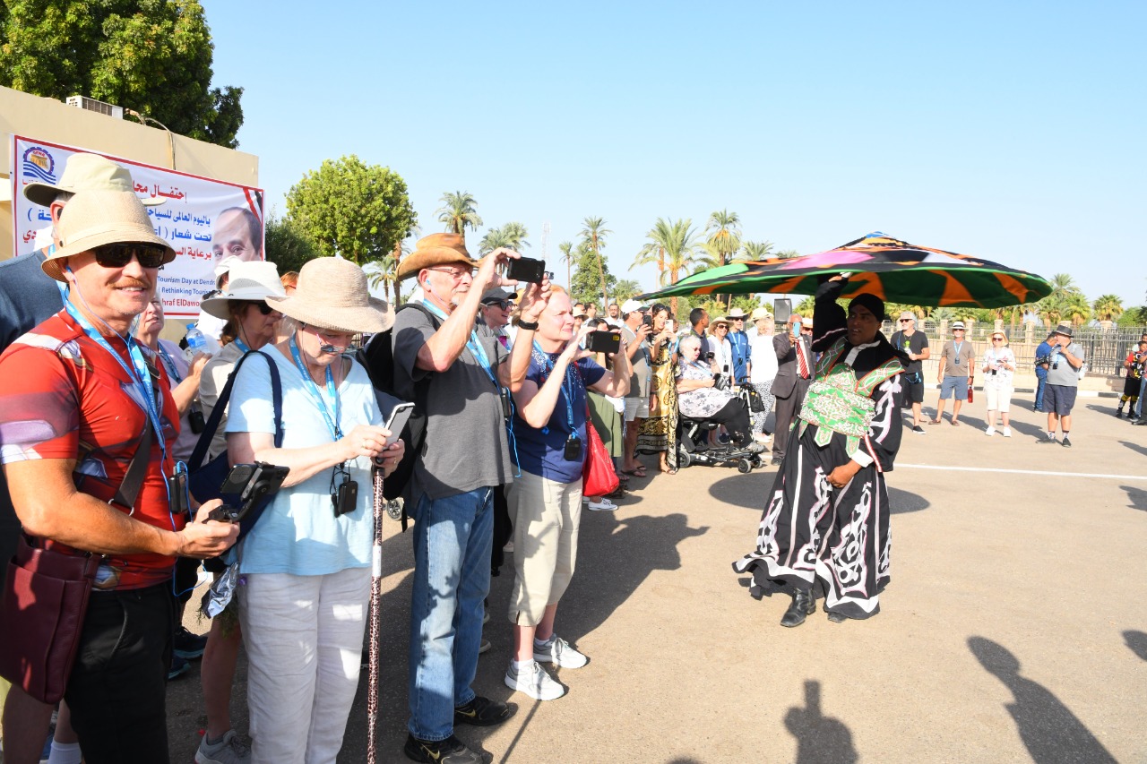 استقبل أطفال مدرسة الفرنسيسكان للراهبات بمحافظة قنا، السائحين في معبد دندرة ترحيبا بهم في اليوم العالمي للسياحة.