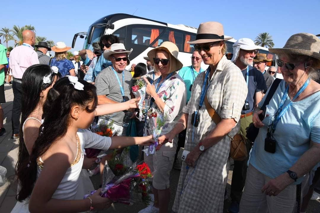 كما رصدت احتفالات الأطفال باستقبال السائحين في معبد دندرة، وسط اجراءات امنية مشددة لمنع اي شئ عكر صفو الاحتفالات.