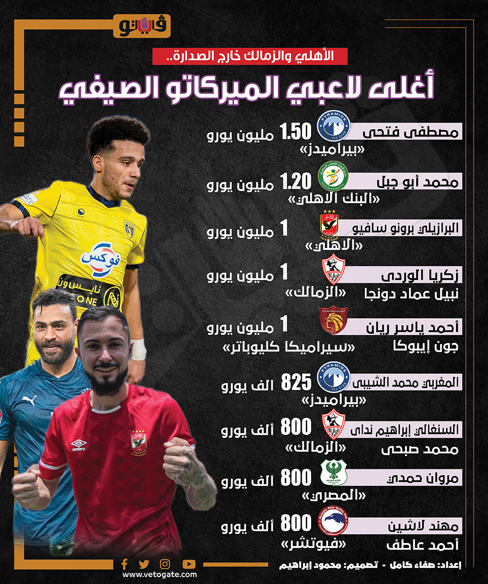الأهلي والزمالك خارج الصدارة.. أغلى لاعبي الميركاتو الصيفي | إنفوجراف الثلاثاء 27/سبتمبر/2022 - 07:26 م 9/27/2022 7:26:01 PM مصطفي فتحي صفاء كامل شارك طباعة 18 حجم الخط شارك طباعة فترة الانتقالات الصيفية اغلي صفقات في الدوري المصري موسم 2022 2023 مصطفى فتحي