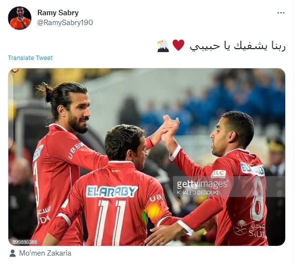 وكتب رامي صبري في رسالته لمؤمن زكريا عبر تويتر "ربنا يشفيك يا حبيبي" .