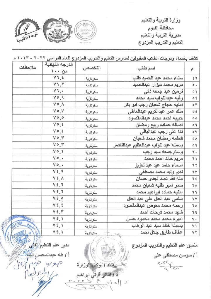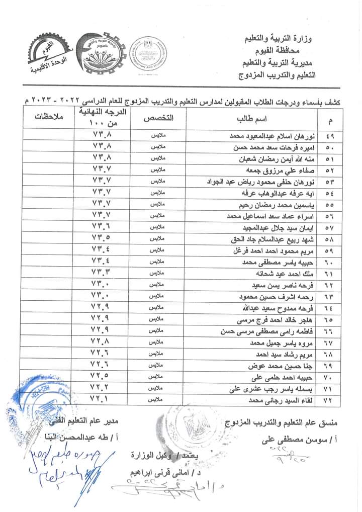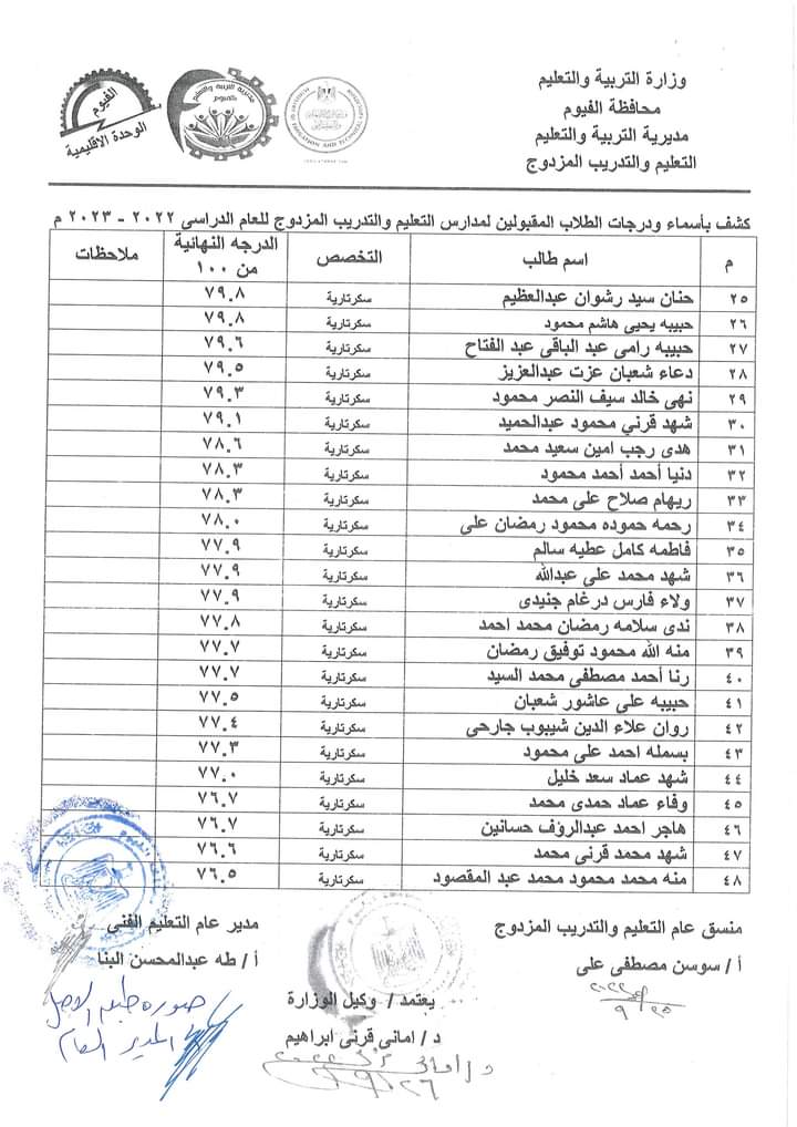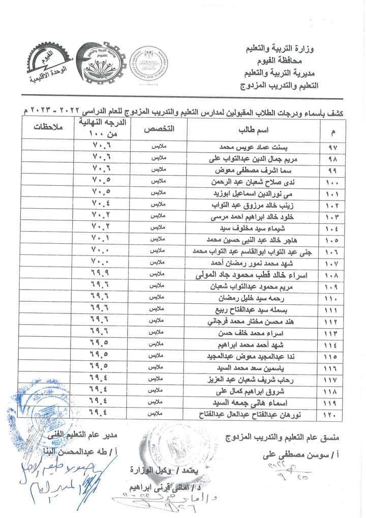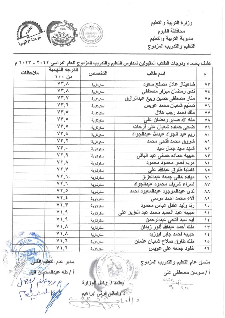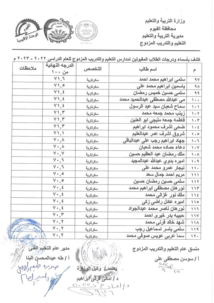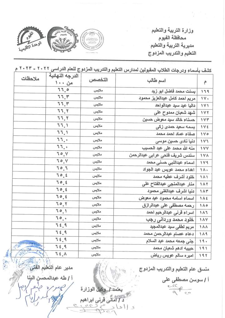 الفيوم تعلن نتيجة القبول بمدارس التعليم والتدريب المزدوج