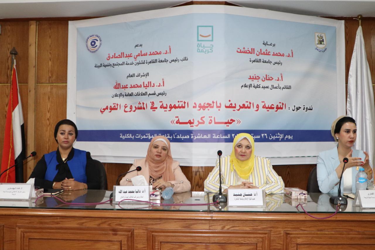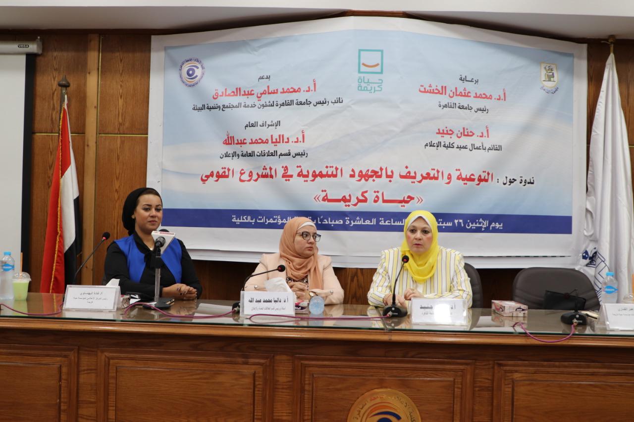 وأقيمت الندوة تحت رعاية الدكتور محمد عثمان الخشت رئيس جامعة القاهرة، والدكتورة حنان جنيد القائم بأعمال عميد الكلية، وبدعم من الدكتور محمد سامي عبد الصادق نائب رئيس الجامعة لشؤون خدمة المجتمع، وبحضور آية عمر القماري رئيس مجلس أمناء مؤسسة حياة كريمة، وغادة البهنساوي رئيس المركز الإعلامي للمؤسسة والدكتورة داليا عبد الله رئيس قسم العلاقات العامة والإعلان وذلك بقاعة المؤتمرات بكلية الإعلام جامعة القاهرة وبحضور طلابي كبير.
