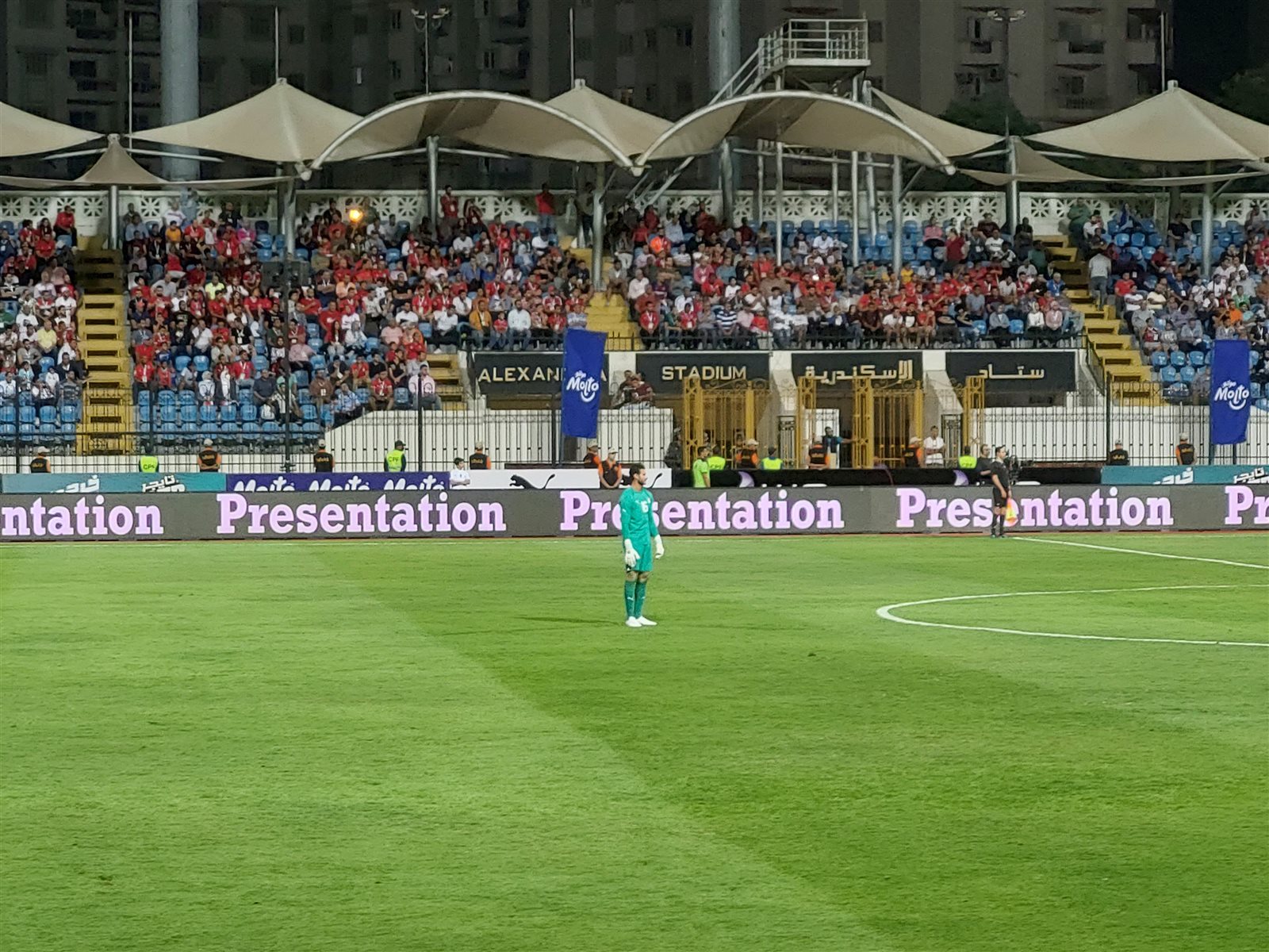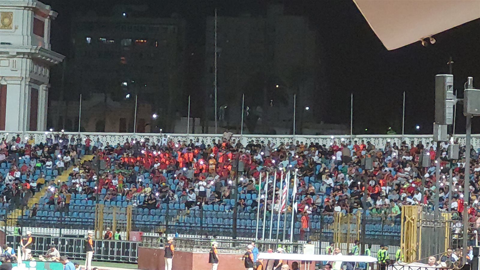 وفي الدقيقة ٢٢ قام مشجعي المنتخب بأضاءه كاشفات الموبايل ذكري لجمهور الزمالك الذي فقد في أحداث استاد الدفاع الجوي.