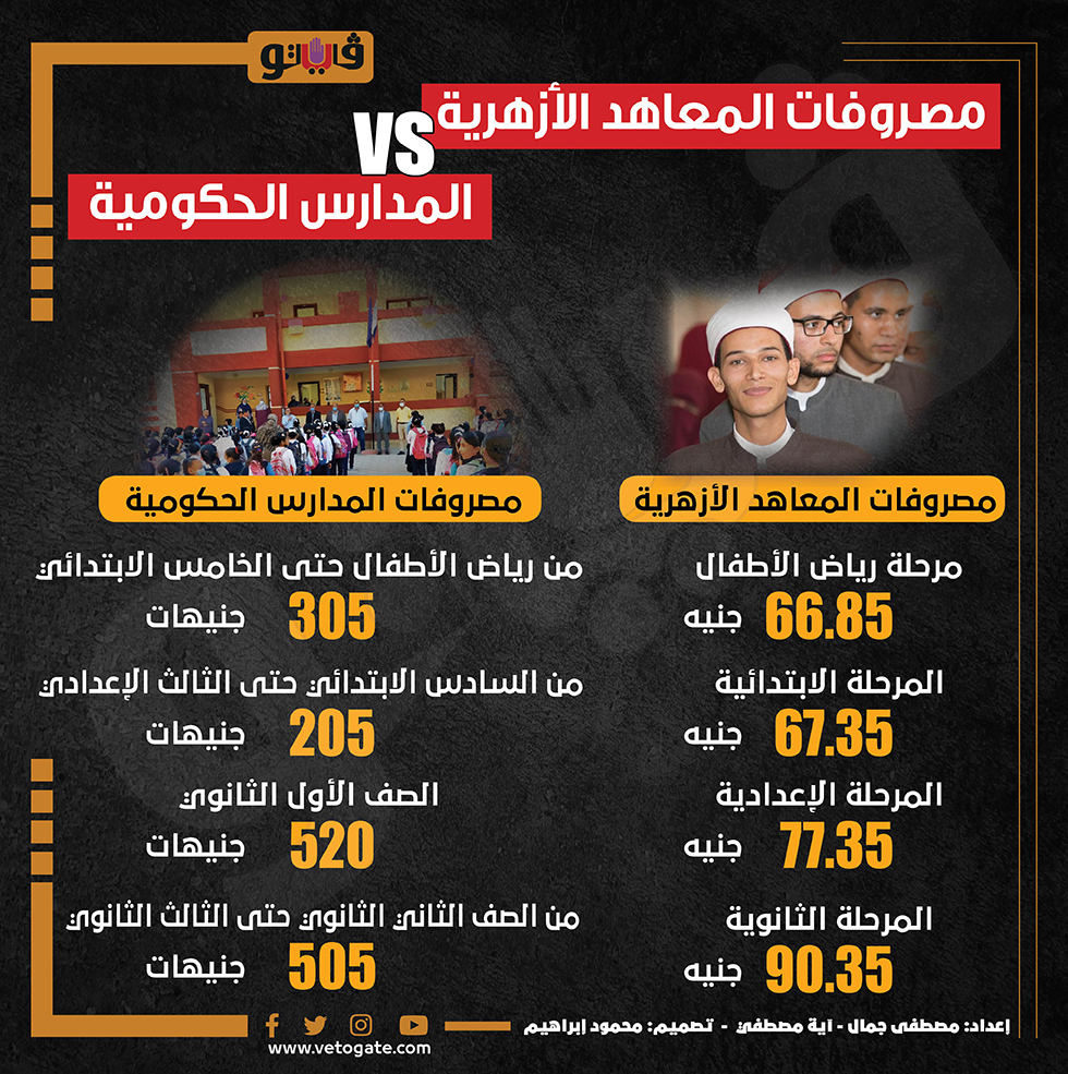 مصروفات المعاهد الأزهرية vs المدارس الحكومية | إنفوجراف الثلاثاء 27/سبتمبر/2022 - 10:46 م 9/27/2022 10:46:43 PM مدارس مصطفى جمال - آية مصطفى شارك طباعة 18 حجم الخط شارك طباعة مرحلة رياض الأطفال مصروفات المدارس الحكومية مصروفات المعاهد الأزهرية مصروفات المدارس المعاهد الأزهرية