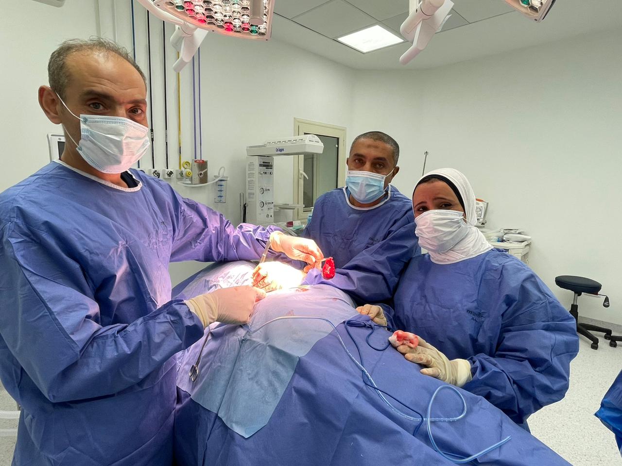 وتمكن فريق طبي بالمستشفى مكون من: الدكتور أحمد جابر استشاري الجراحة والدكتور أحمد حافظ اخصائي الجراحة والدكتور ايمن هنداوي، اخصائي التخدير، وهيئة التمريض، من إجراء أول جراحة لاستئصال ورم بالغدة الدرقية لسيدة في منتصف عقدها الرابع من العمر، ضمن فعاليات التشغيل التجريبي للمستشفى.