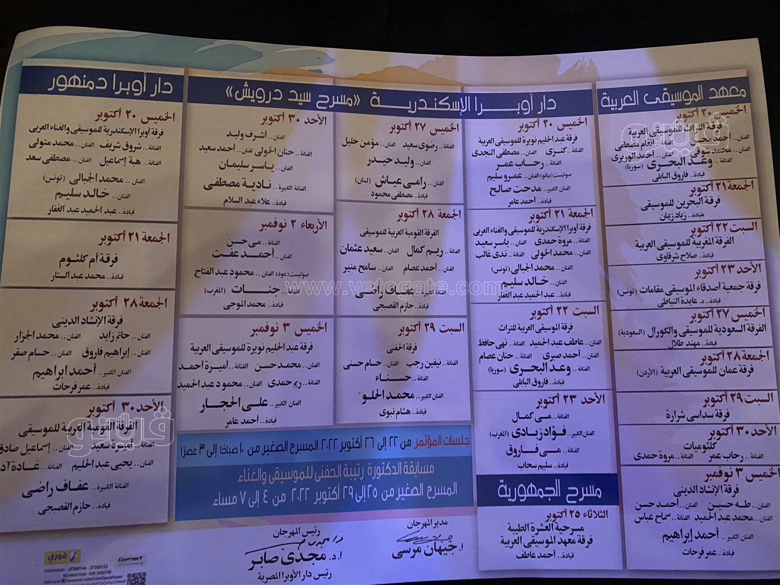 جدول حفلات مهرجان الموسيقى العربية على مسارح الجمهورية وأوبرا الإسكندرية ودمنهور