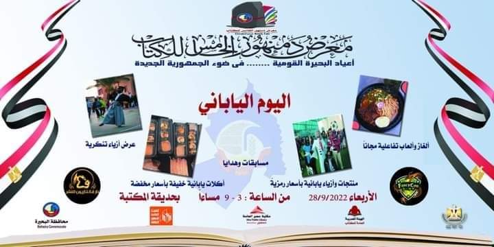 يواصل معرض دمنهور الخامس للكتاب تقديم الفاعليات والأنشطة وذلك من خلال عرض ندوات مختلفة ومتنوعة، حيث قام المعرض بتقديم عرض فني لفرقة البحيرة للإنشاد الديني اليوم الأربعاء 28 سبتمبر فى تمام الساعة السابعة مساءً بالمسرح الروماني وأيضًا تقديم حفل ياباني يتضمن ألغاز وألعاب تفاعلية مجانية ومنتجات وأزياء يابانية بأسعار رمزية ومسابقات وهدايا وعرض أزياء تنكرية ويابانية بأسعار مخفضة ويأتي ذلك على هامش معرض دمنهور الخامس للكتاب .