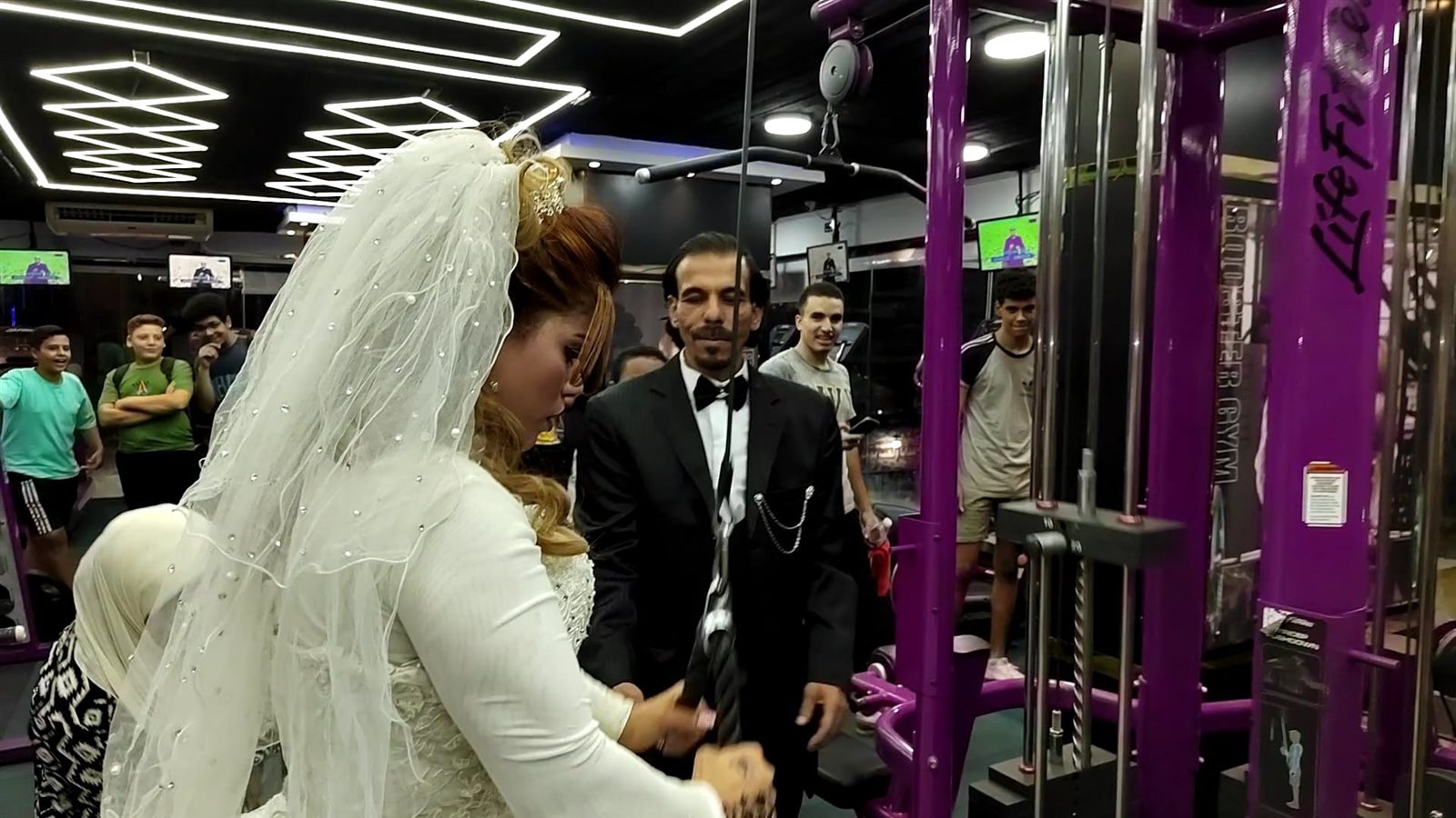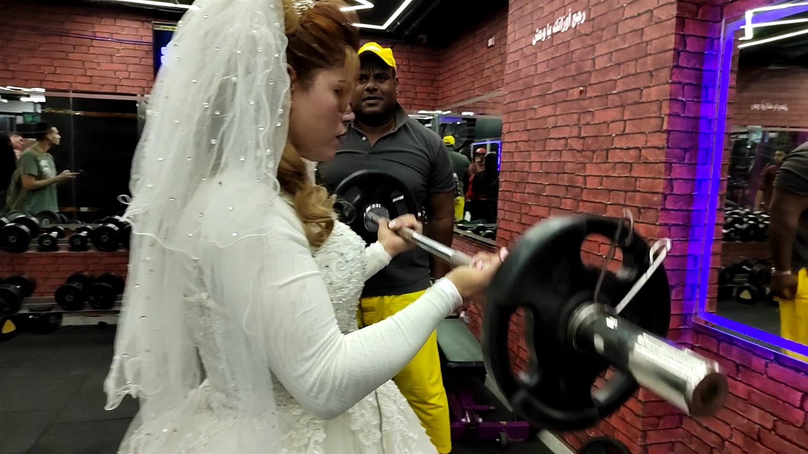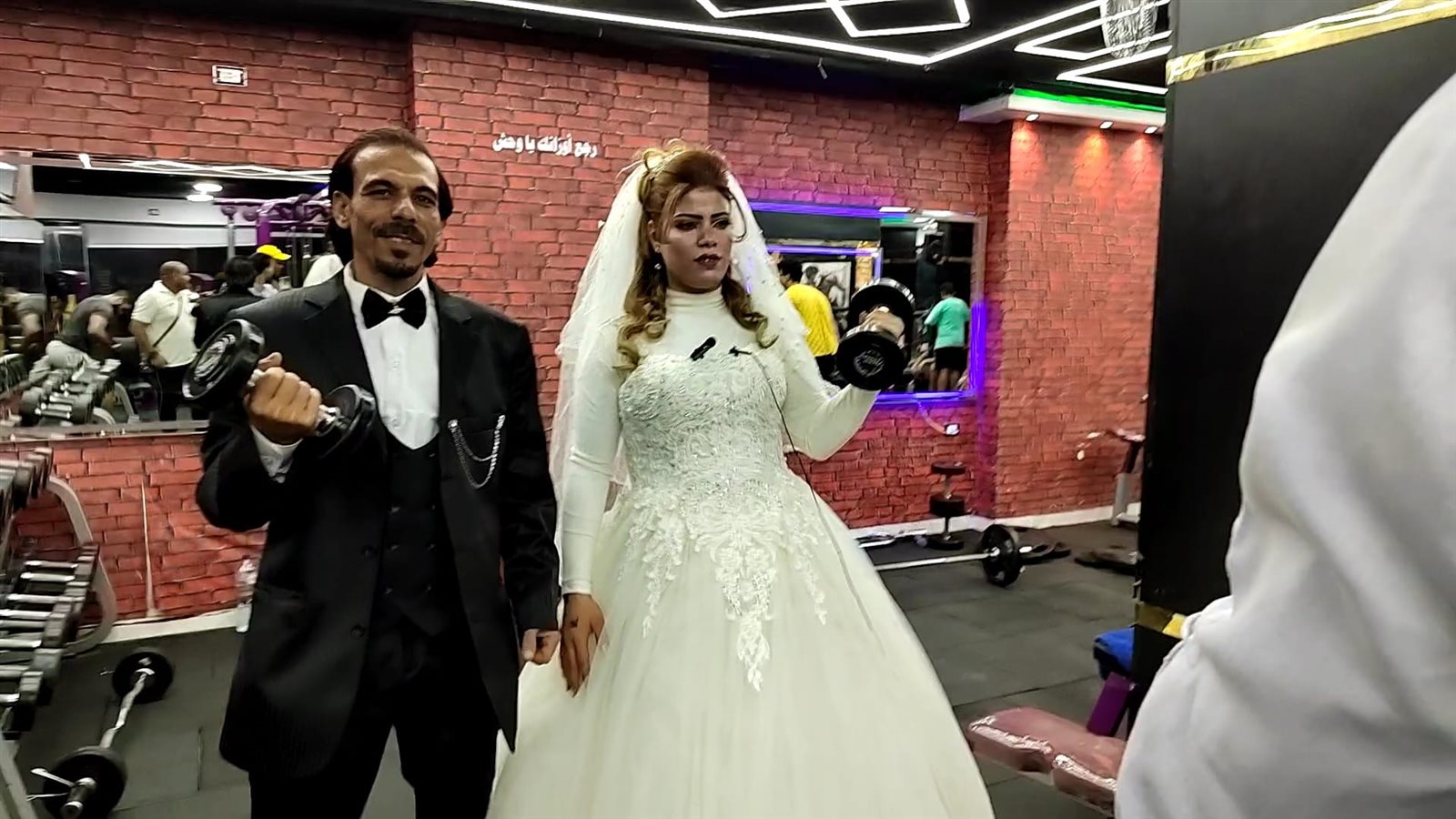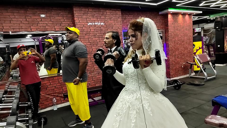 أغرب احتفال زفاف.. عروسة مصرية تتدرب في الجيم وتحمل عريسها بإيد واحدة | صور