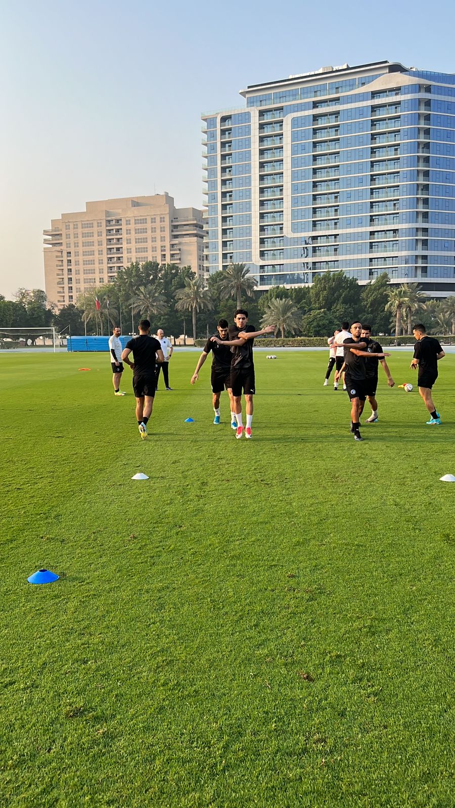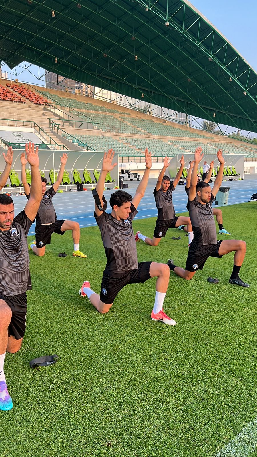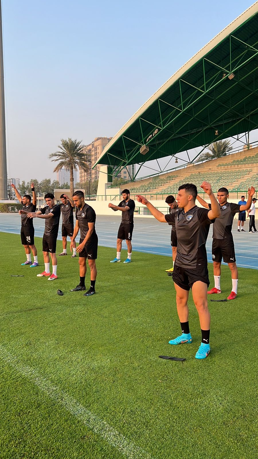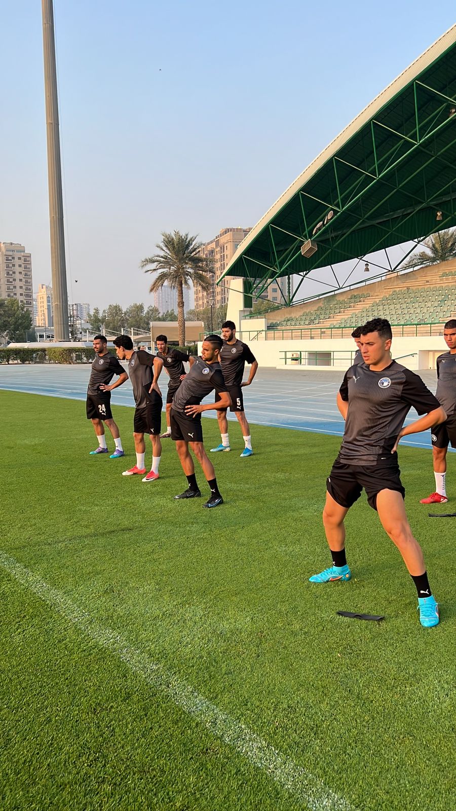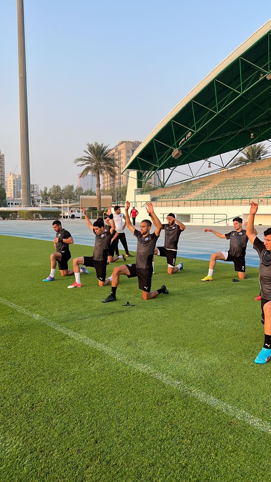 وخاض الفريق تدريبا صباحيا قويا بملعب الشرطة في مدينة دبي، حيث قسم المدير الفني اللاعبين إلى مجموعتين، الأولى للدفاع والثانية للاعبي الهجوم، وأجرى تدريبات خاصة بكل مجموعة، على أن يخوض الفريق مرانا مسائيا اليوم لزيادة معدلات اللياقة البدنية.