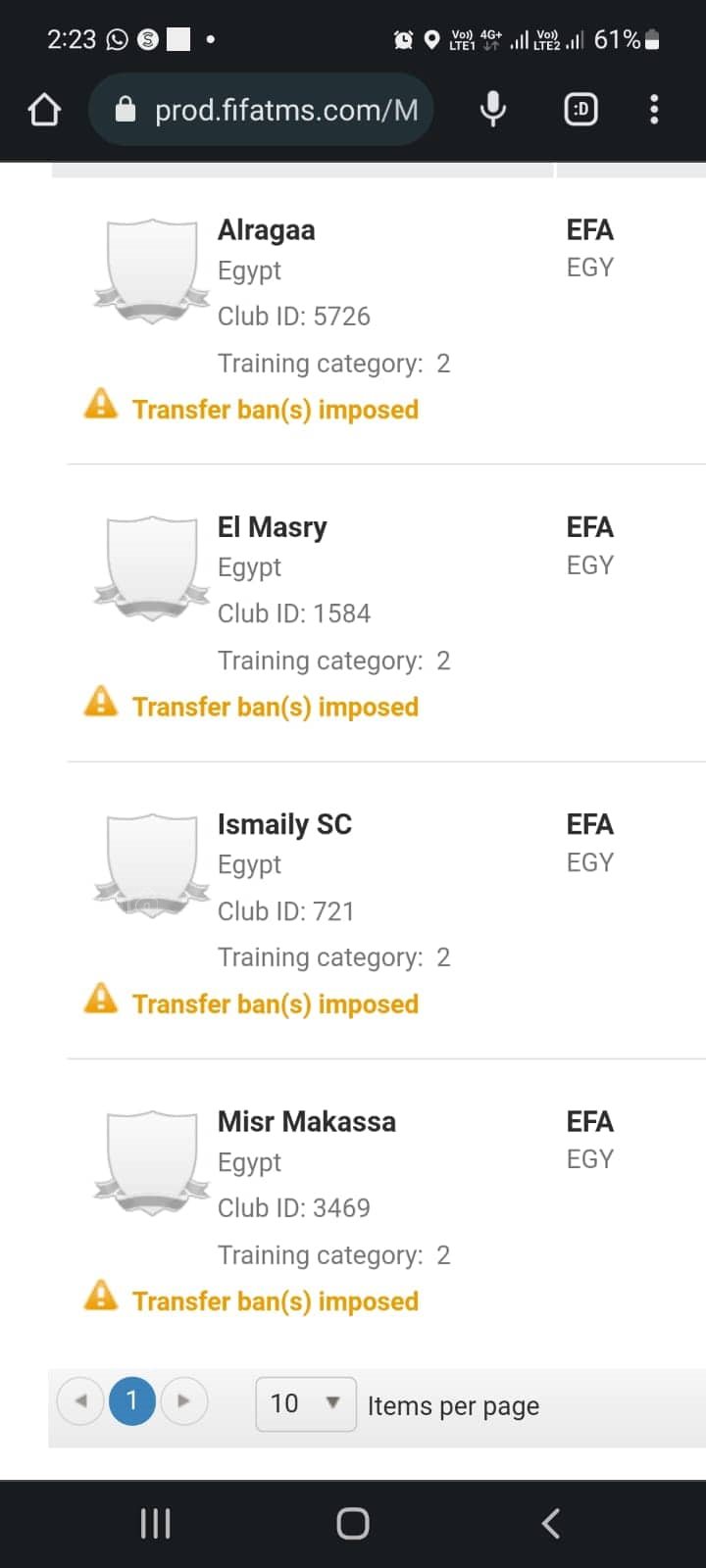 وبحسب آخر تحديث لنظام tms الخاص بقيد اللاعبين في الفيفا انفردت فيتو بنشر أسماء أربعة أندية ممنوعة من القيد وهي الرجاء والمصري والإسماعيلي ومصر المقاصة.
