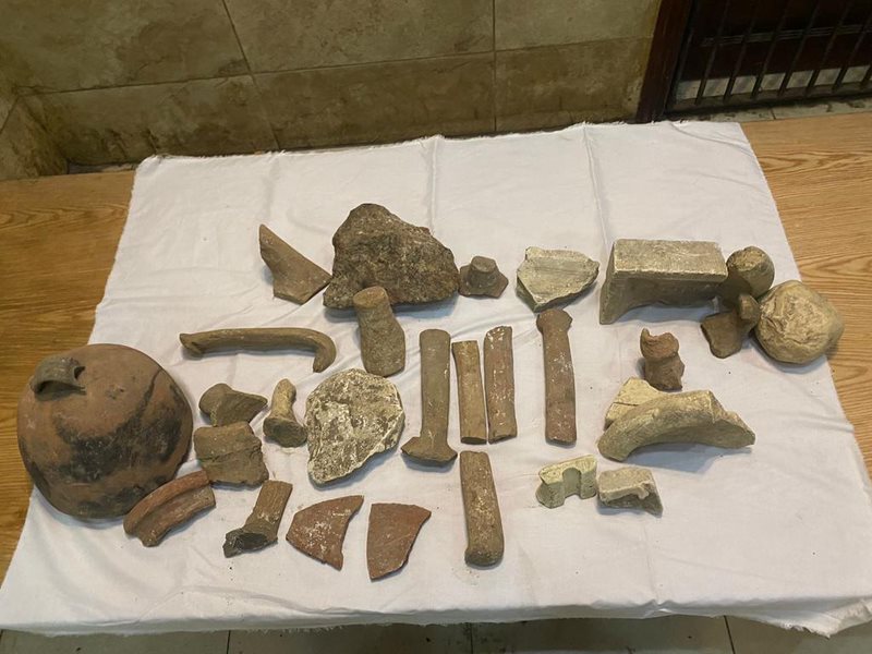 وعقب تقنين الإجراءات أمكن ضبطه، وتم العثور على (حفرة - مجموعة من القطع والأوانى الفخارية والحجارة "يشتبه فى كونها شواهد أثرية" - الأدوات المستخدمة فى الحفر).