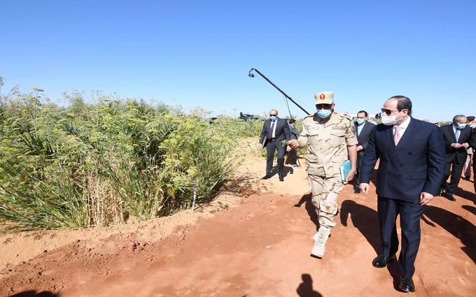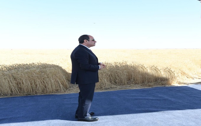 كما تفقد الرئيس عبد الفتاح السيسي مؤخرا مشروعات استصلاح الأراضي الزراعية ومزارع القمح والنخيل بمنطقة توشكى بجنوب الوادي.