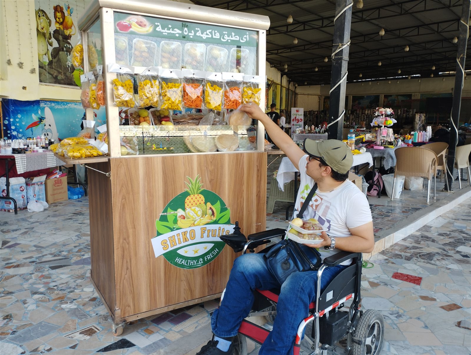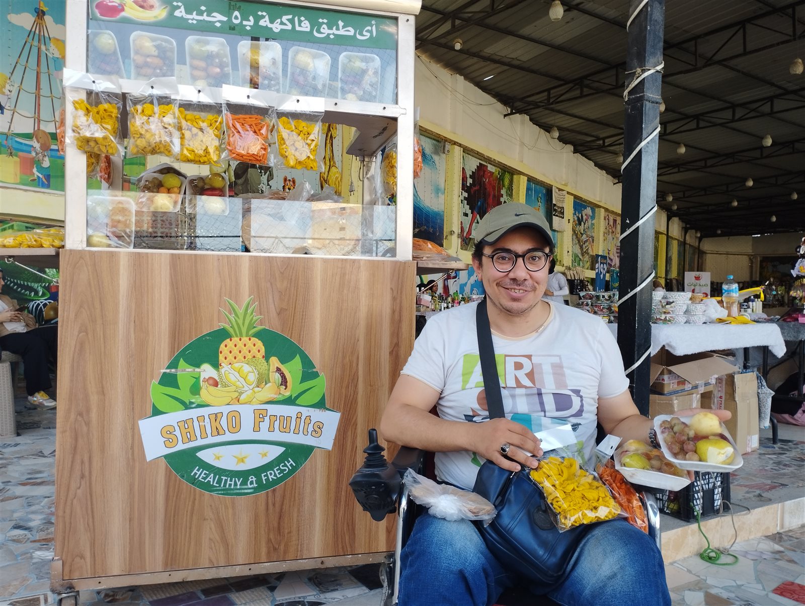 طبق الفاكهة بـ 5 جنيهات.. شاب من ذوي الهمم يواجه تحديات الحياة بمشروعه الخاص | صور