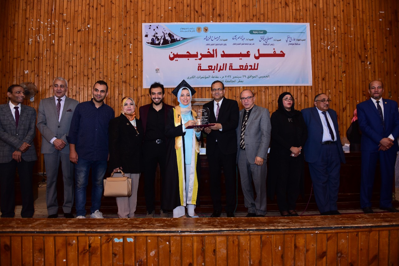 شهد الدكتور مصطفى عبد الخالق رئيس جامعة سوهاج، حفل عيد الخريجين بكلية الصيدلة، للاحتفال بتخرج طلاب الدفعة الرابعة لعام ٢٠٢١م، وذلك بقاعة المؤتمرات الكبرى بمقر الجامعة القديم، وبحضور الدكتور عبدالناصر يس نائب رئيس الجامعة لشئون التعليم والطلاب، والدكتور أحمد القاضي نقيب الصيادلة بالمحافظة، الدكتور محمد صلاح وكيل الكلية لشئون التعليم والطلاب، والدكتور محمود الأمير رئيس قسم الصيدلانيات، والدكتورة إيزيس وهيب مدير إدارة الصيدليات، والدكتورة ألفت المزلاوي عضو مجلس النواب، والدكتور ياسر طه مدير إدارة رعاية الشباب بالكلية ونخبة من أعضاء هيئة التدريس والعاملين بالكلية، وأعضاء النقابة، وأولياء أمور الخريجين.