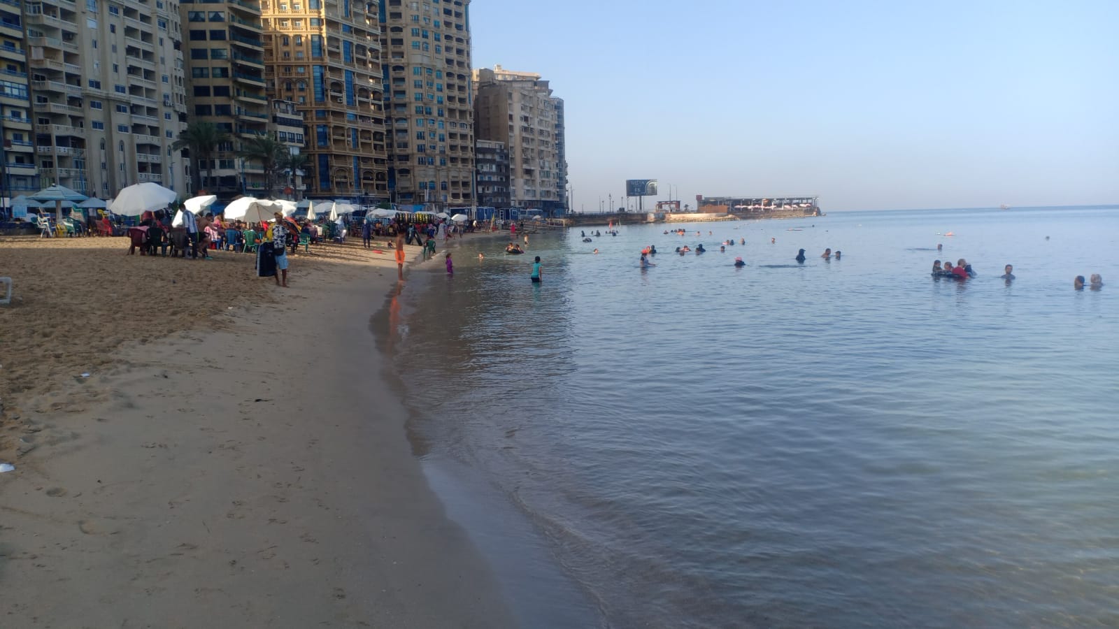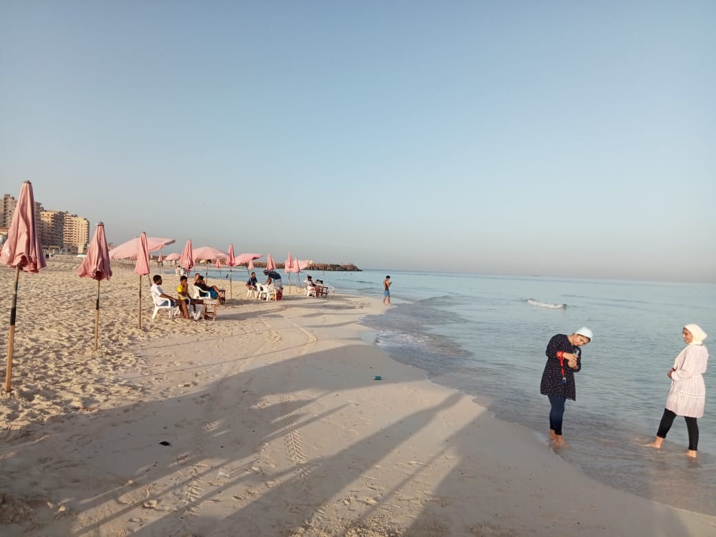 وساهم ارتفاع درجات الحرارة وهدوء اﻷمواج في توافد اﻷسر والشباب علي الشواطئ للاستمتاع بمياه البحر.