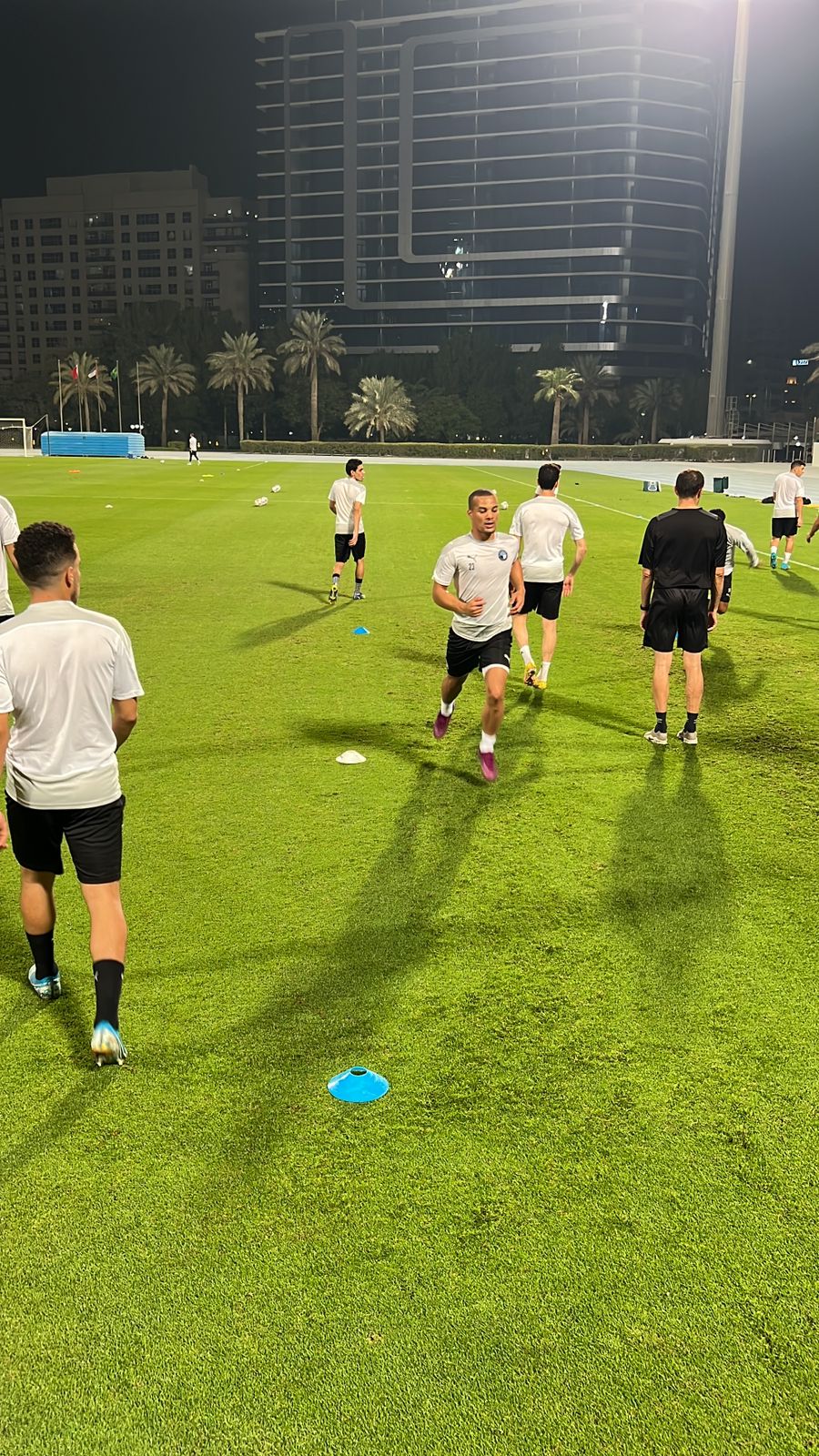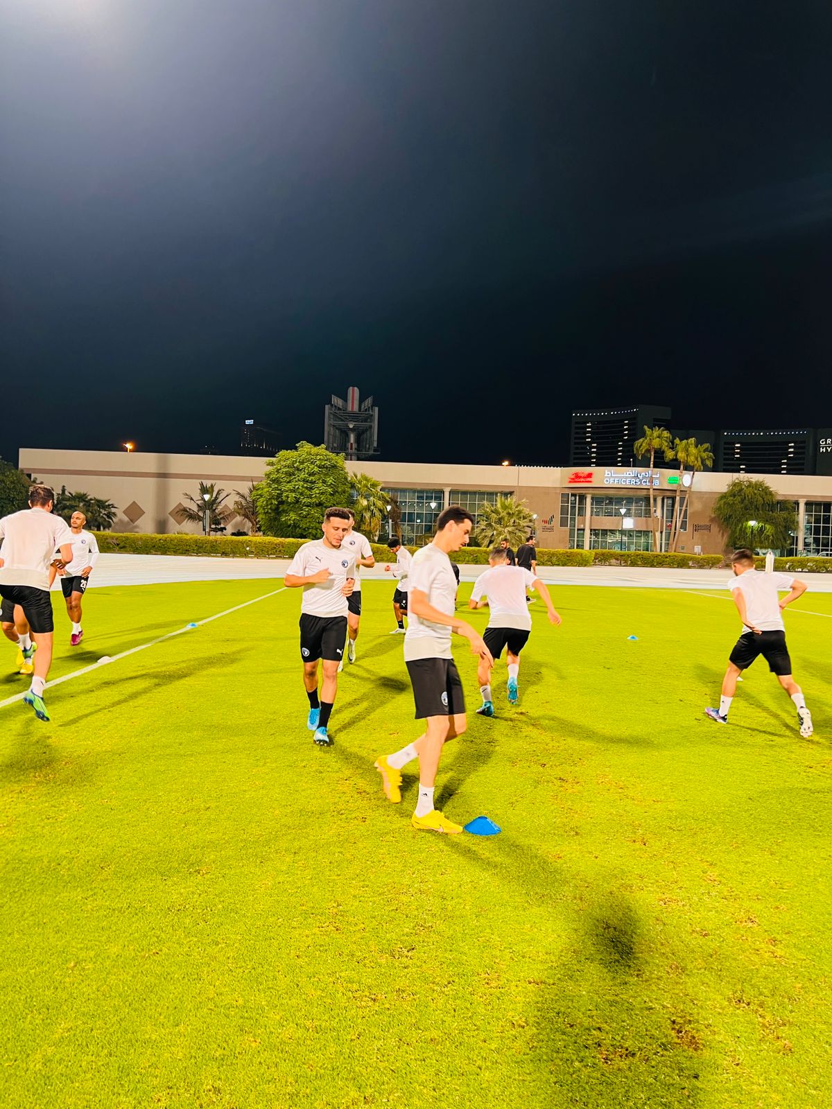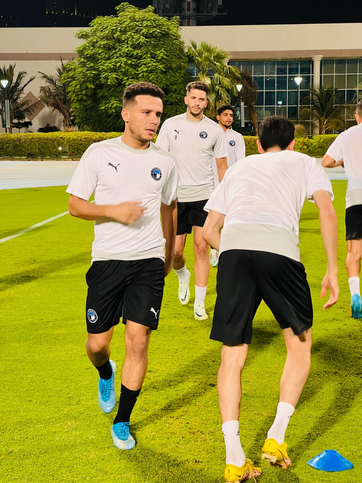 وخاض الفريق تدريبًا صباحيًّا قويًّا بملعب الشرطة في مدينة دبي، حيث قسم المدير الفني اللاعبين إلى مجموعتين، الأولى للدفاع والثانية للاعبي الهجوم، وأجرى تدريبات خاصة بكل مجموعة، على أن يخوض الفريق مرانا مسائيا اليوم لزيادة معدلات اللياقة البدنية.
