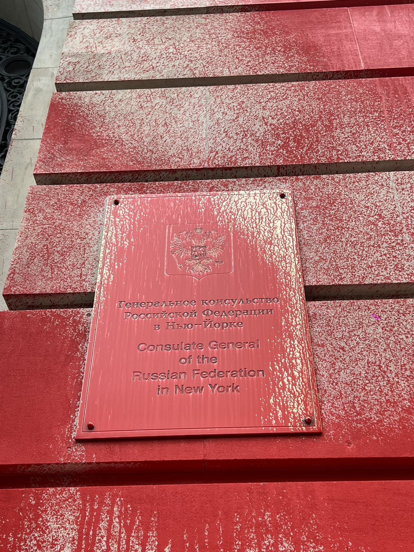 تعرَّضت القنصلية الروسية في الجانب الشرقي الأعلى من مانهاتن للتخريب أمس الجمعة، في ما يبدو احتجاجًا على موصلة الرئيس فلاديمير بوتين العملية العسكرية في أوكرانيا، وفقًا لإدارة شرطة نيويورك.