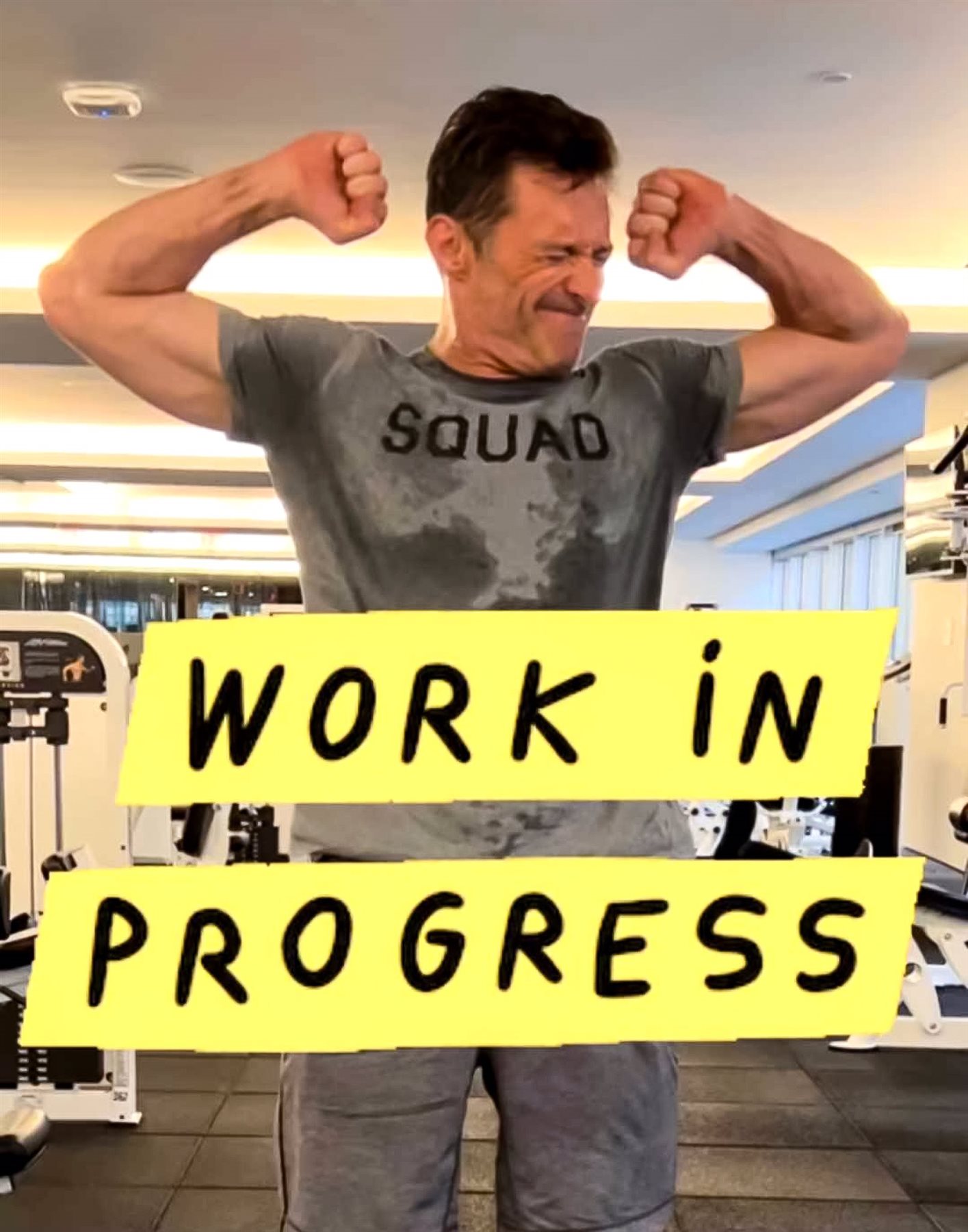 وكتب هيو جاكمان “جاري العمل”، تعليقا علي خطواته لاستعاده اللياقة البدنية اللازمة لتجسيد شخصية “ولفرين”، المعروفة بضخماتها العضلاية.