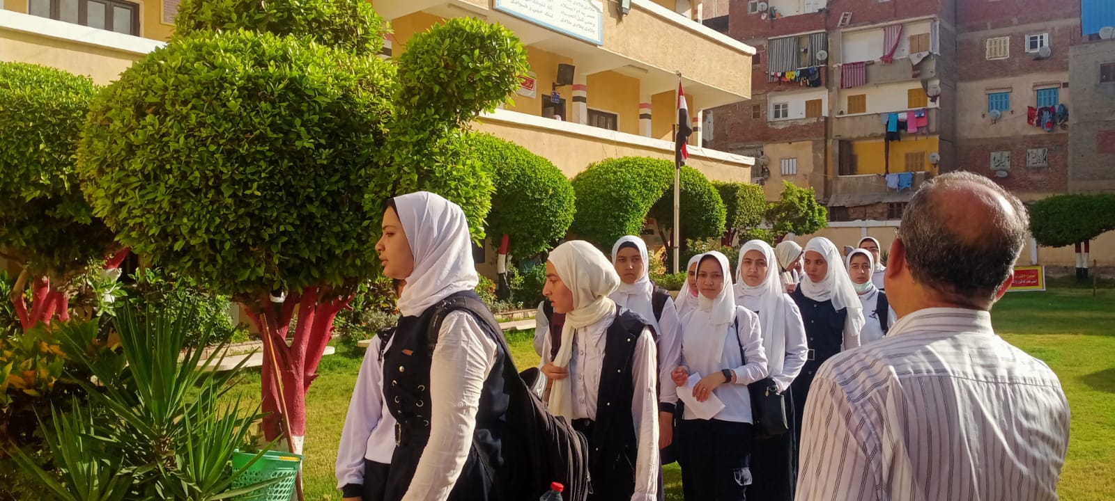 وتنظيم يوم للتعارف بالمدارس لطلاب الصفوف الأولى لتعريفهم بأماكن فصولهم واصطفافهم وتدريبهم على طابور الصباح وتسليمهم للكتب المدرسية وإزالة أي إشغالات بجوار المدارس خاصةً بجوار بوابات الدخول والخروج للتلاميذ وبجوار أسوار المدارس ونطاقها. وتكثيف أعمال النظافة والتعقيم والالتزام بتطبيق كافة الإجراءات الاحترازية والتدابير الوقائية اللازمة لحماية الطلاب والمعلمين من الأمراض المعدية بالإضافة الي مراجعة أسوار المدارس والتأكد من سلامة الأبواب والشبابيك والمقاعد والزجاج.