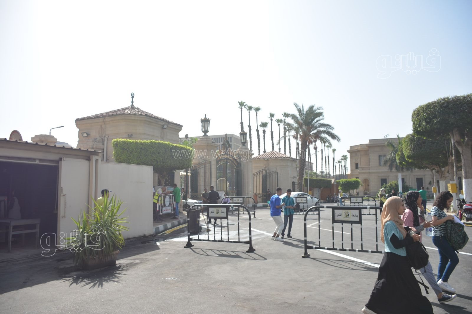 وشهدت بوابات جامعة القاهرة، تفتيش الطلاب عبر بوابات كاشف المعادن قبل الدخول، وقياس درجة حرارتهم وخضوعهم للتعقيم وذلك لحمايتهم من فيروس كورونا.