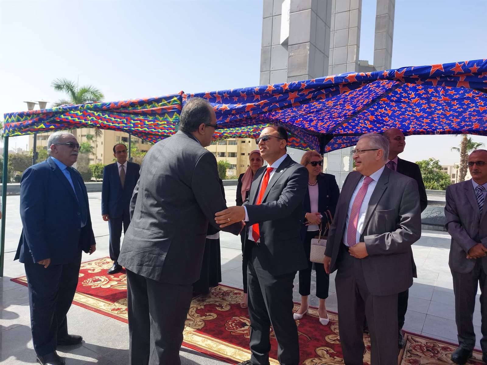 رئيس جامعة حلوان يستقبل الطلاب في أول أيام العام الدراسي الجديد | فيديو