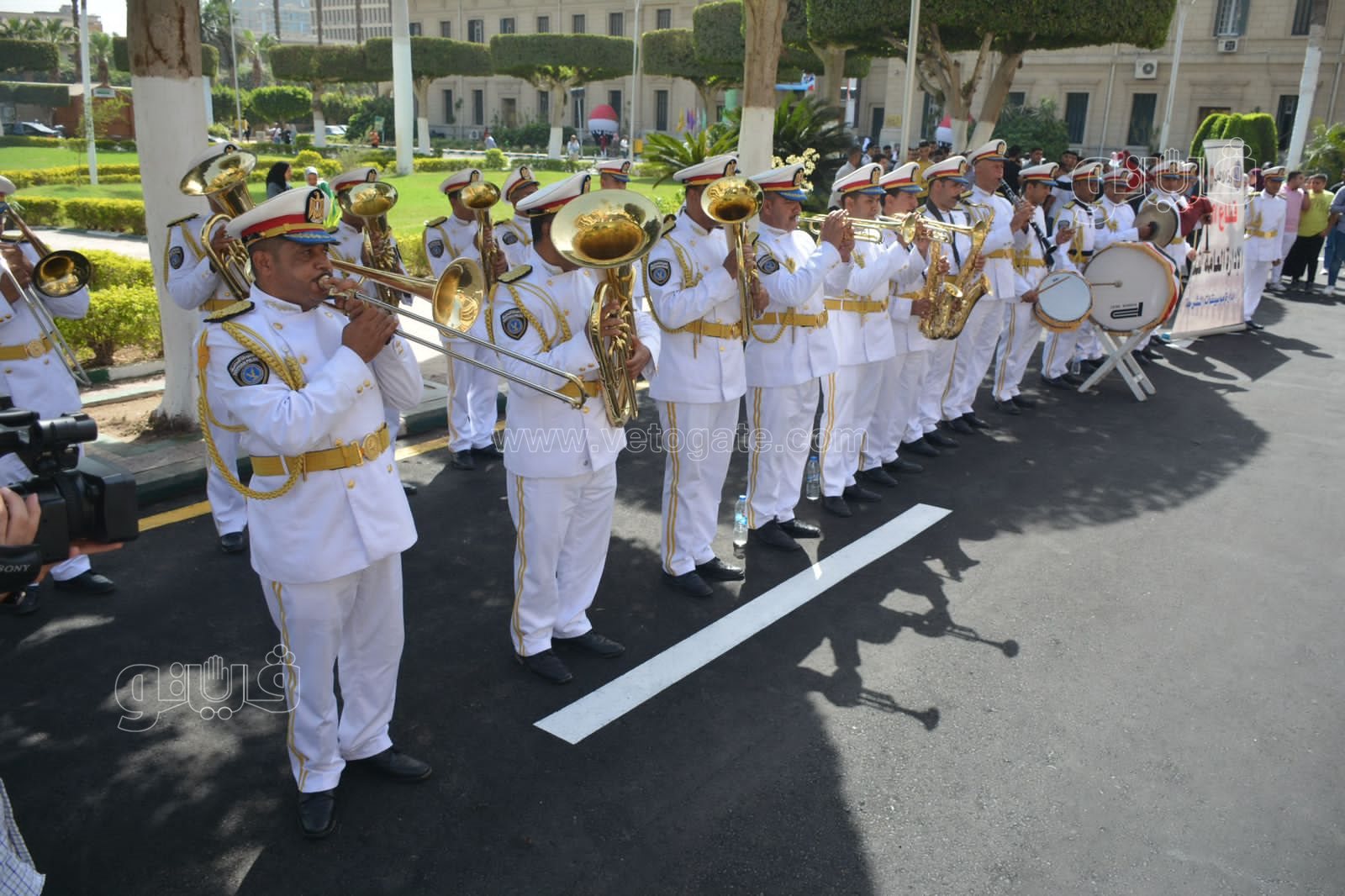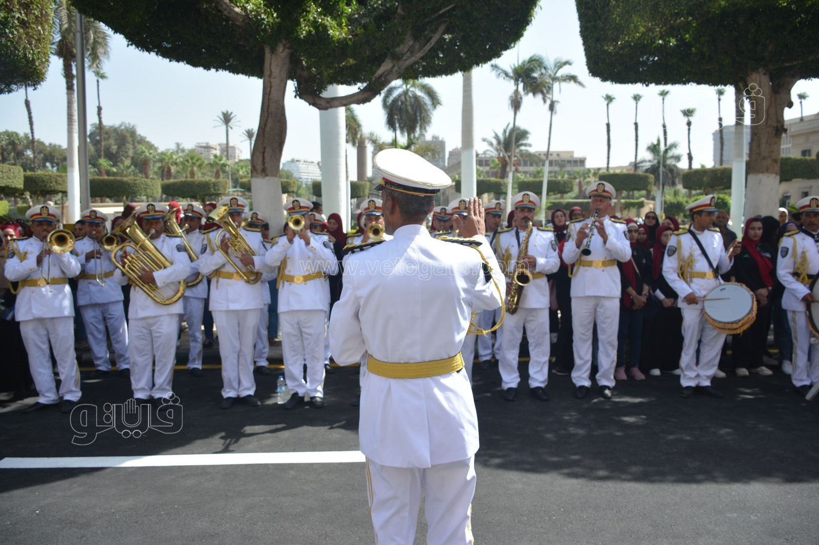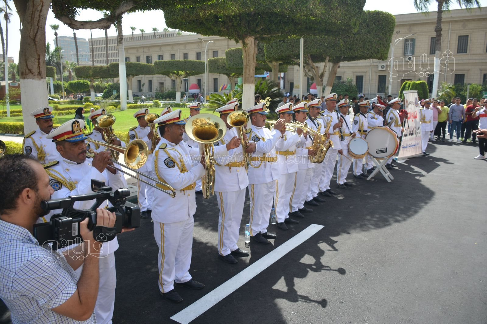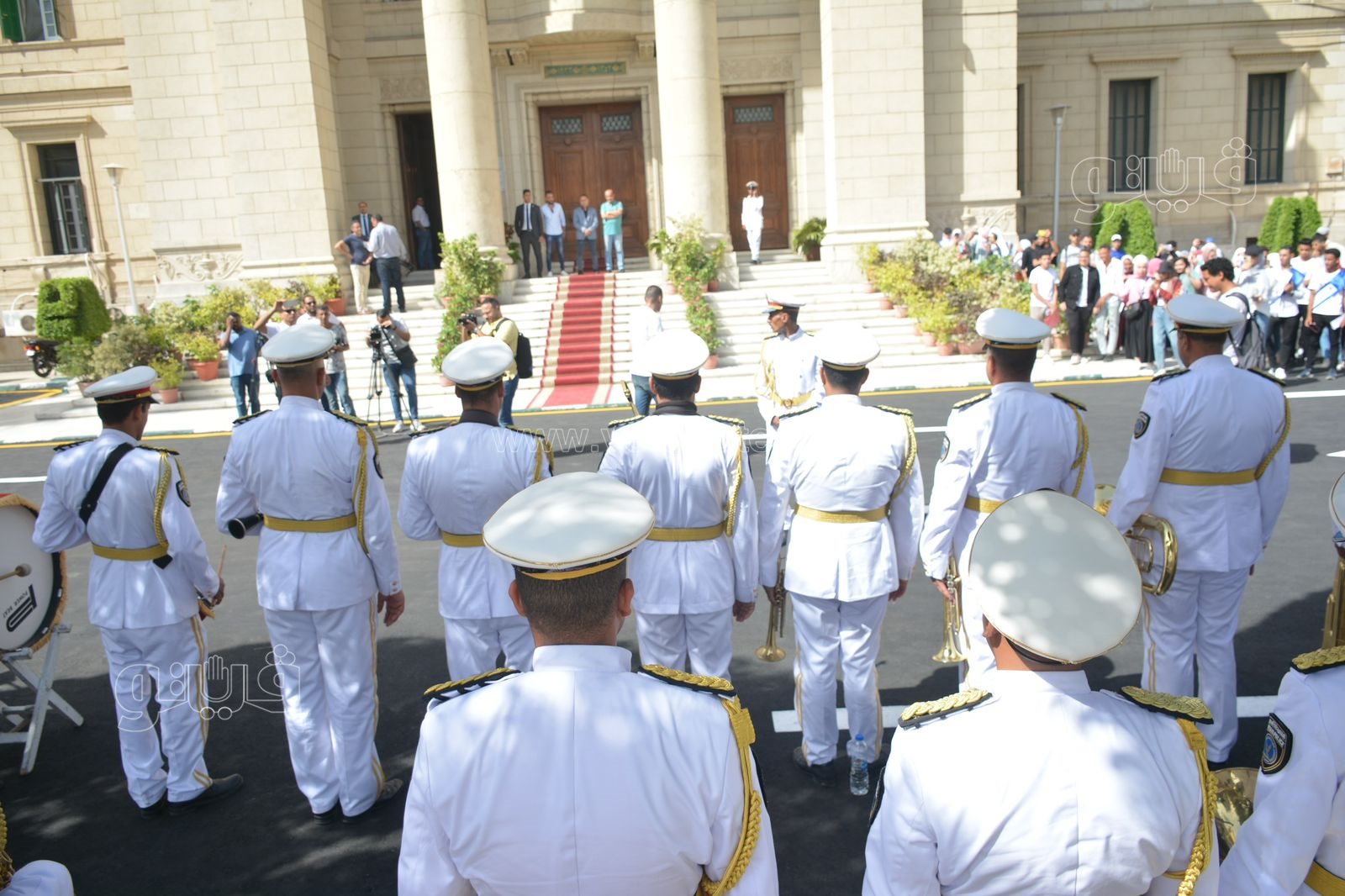 جامعة القاهرة تستقبل الطلاب بالفرقة الموسيقية العسكرية | صور