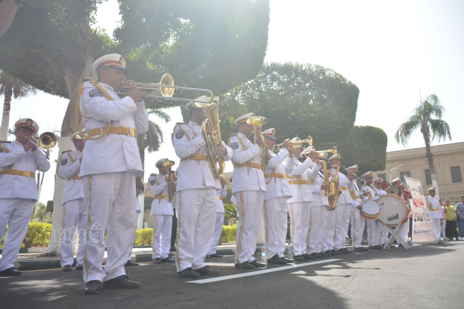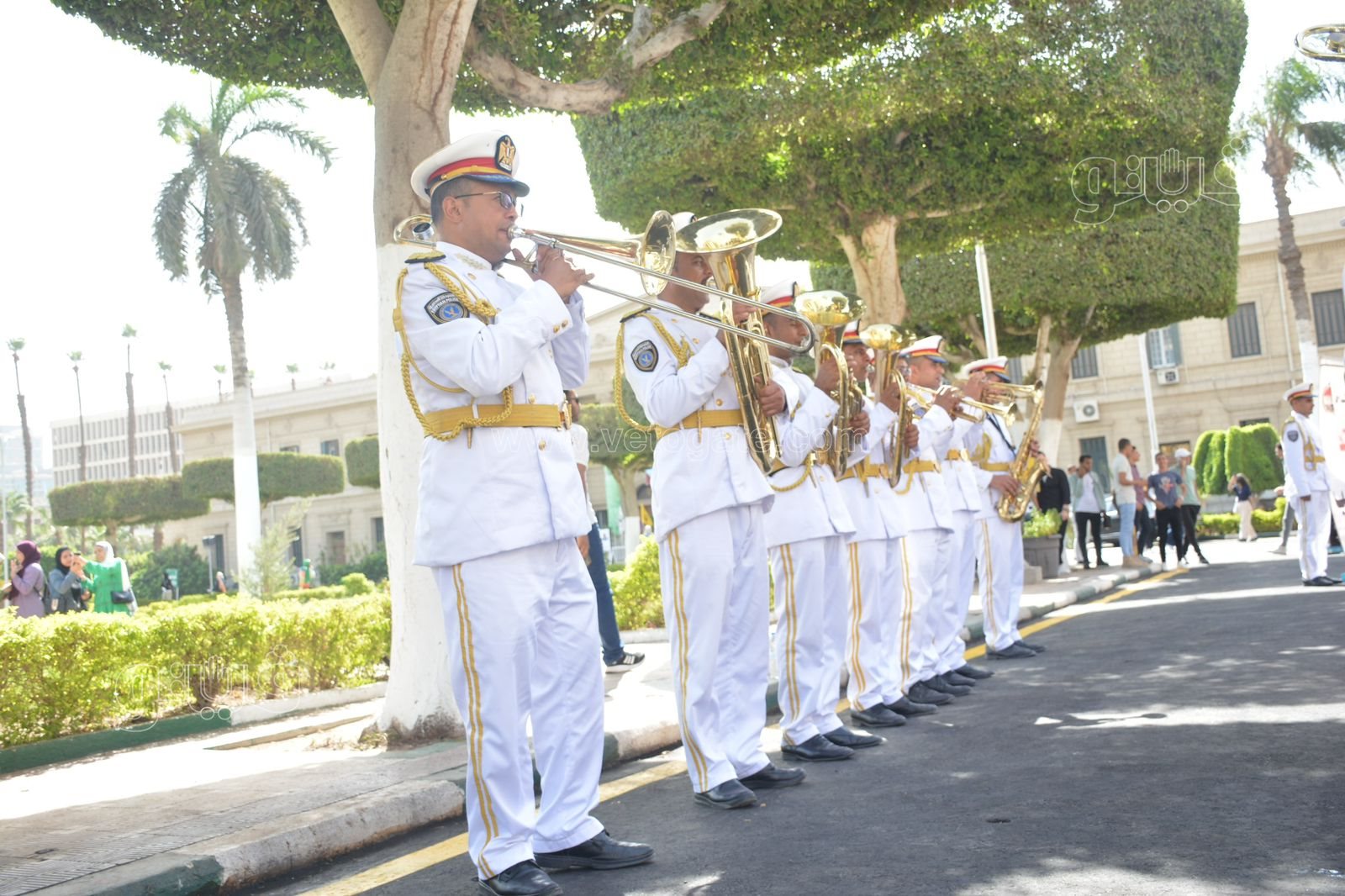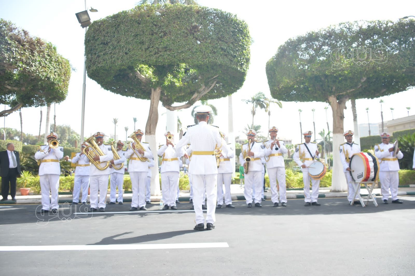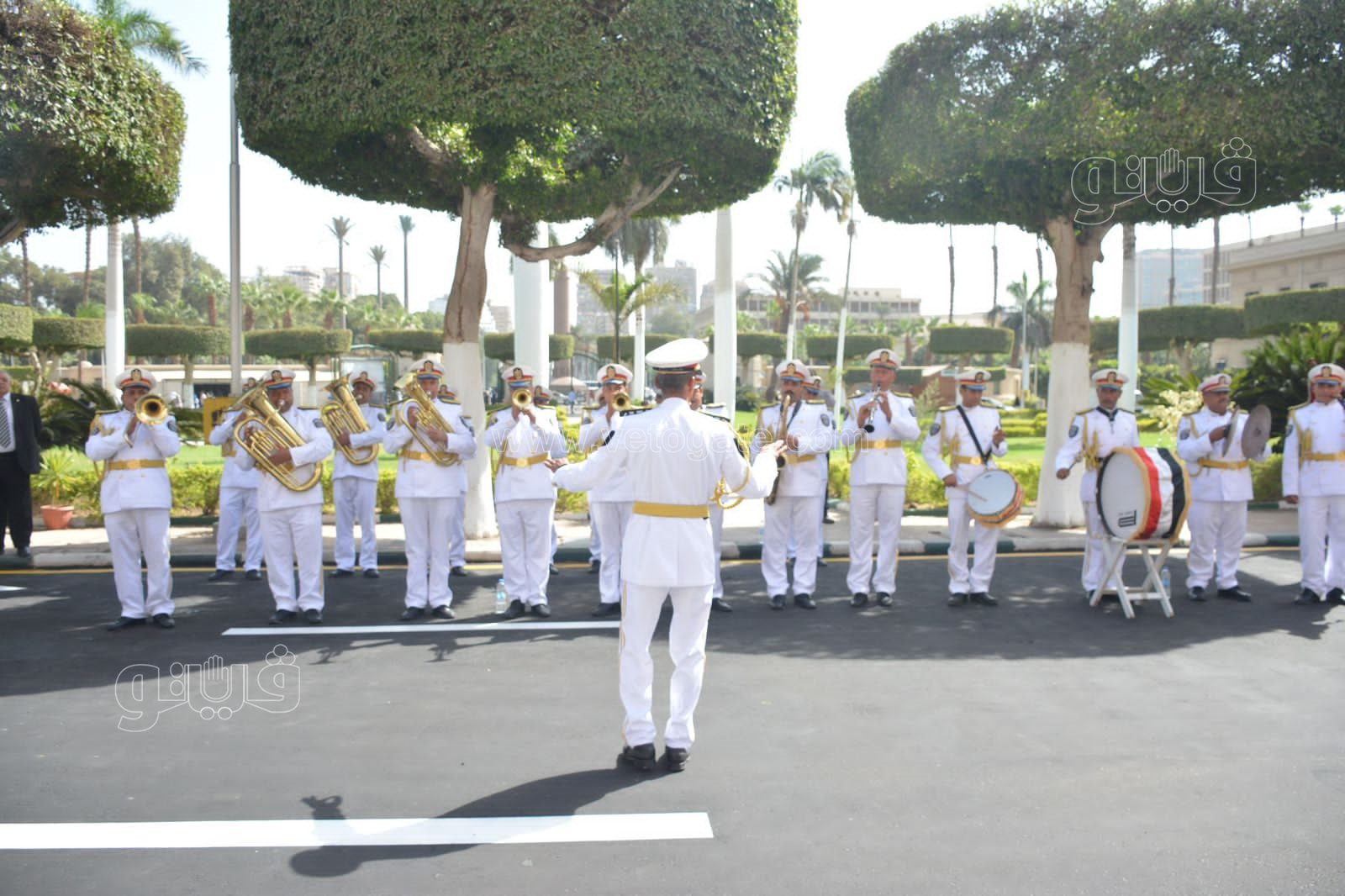 جامعة القاهرة تستقبل الطلاب بالفرقة الموسيقية العسكرية | صور