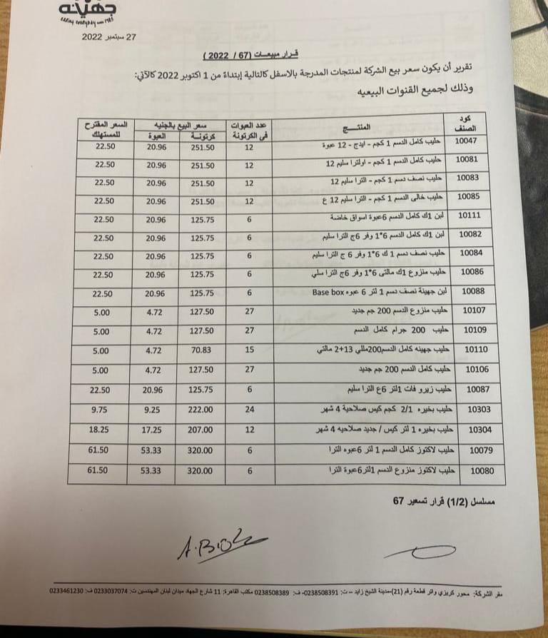 وكانت أسعار الألبان السائب والمعبأ شهدت ارتفاعا في أسعارها داخل الأسواق المحلية بعد زيادة أسعار الأعلاف بالإضافة إلى ارتفاع أسعار بعض منتجات الجبن مثل عبور لاند ودومتي.