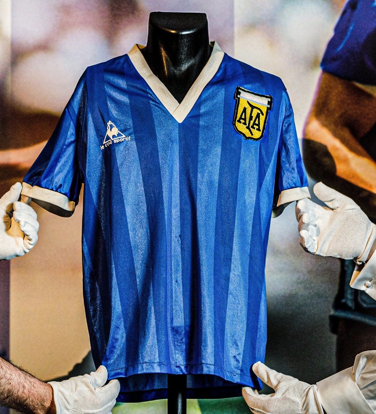 وأحرز مارادونا هدفه الشهير في شباك منتخب إنجلترا في دور الثمانية بكأس العالم 1986 في المكسيك عندما كان يرتدي القميص الأزرق رقم 10.