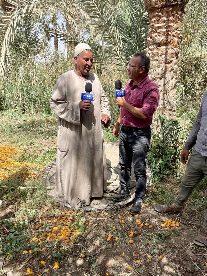 وأجرى جابر القرموطي لقاءات مع أصحاب مزارع النخيل والعمال وطالعي النخل، لشرح مراحل موسم الحصاد، وأجرى معايشة بنفسه لطلوع النخل ومراحل التقطيع والجمع والفرز والتوريد.