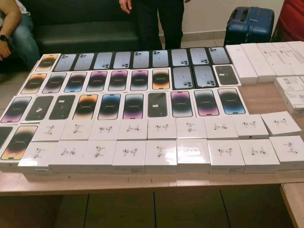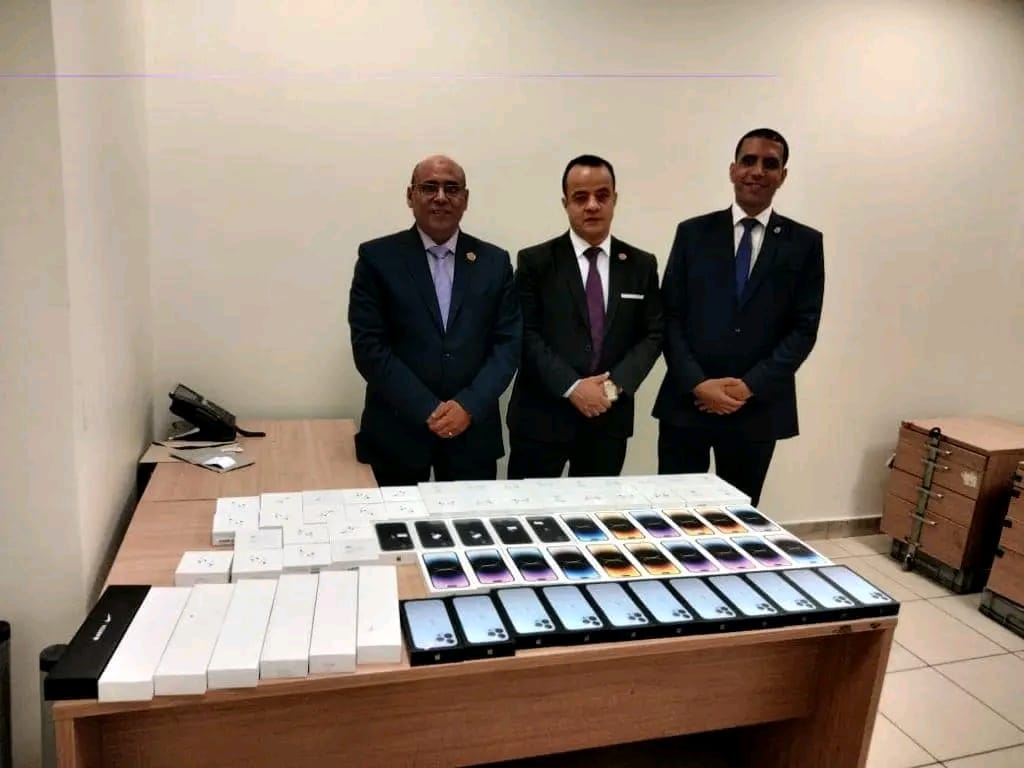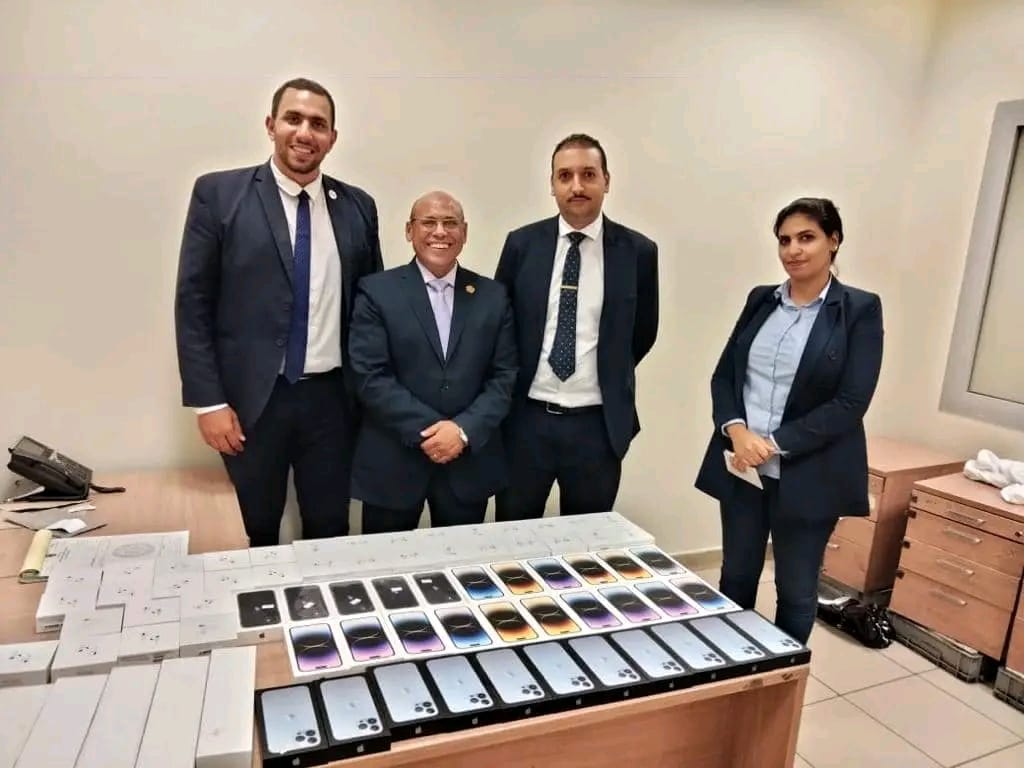 وبالعرض أحمد الحكش مدير الإدارة الثانية بالإنابة قرر تشكيل لجنة من أحمد محمود البسيوني مدير الحركة والمشرف على صالة الوصول وهبة مصطفى وابتهال مصطفي ومصطفي محمد مأمورى الجمرك لتفتيش أمتعة الراكب فتبين وجود ٣٢ هاتفا محمولا ماركة آيفون و٣٥ سماعة بلوتوث و٧ ساعات يد ذكية مخبأة داخل الأمتعة الشخصية.
