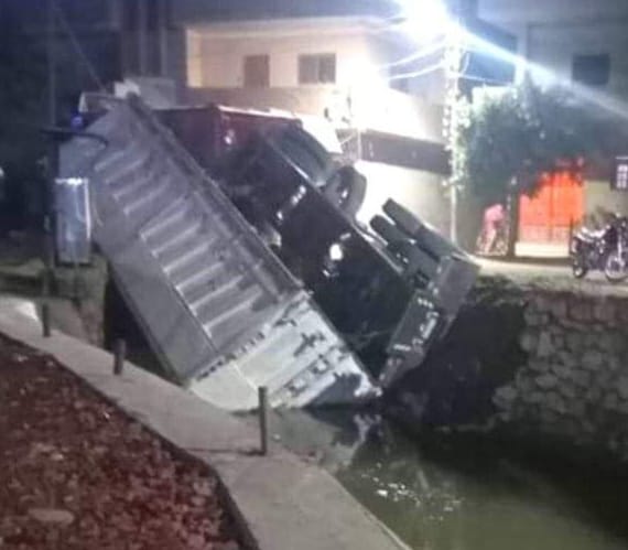 إصابة شخصين بحادث انقلاب تريلا في ترعة "الباذنجانية" بالغربية