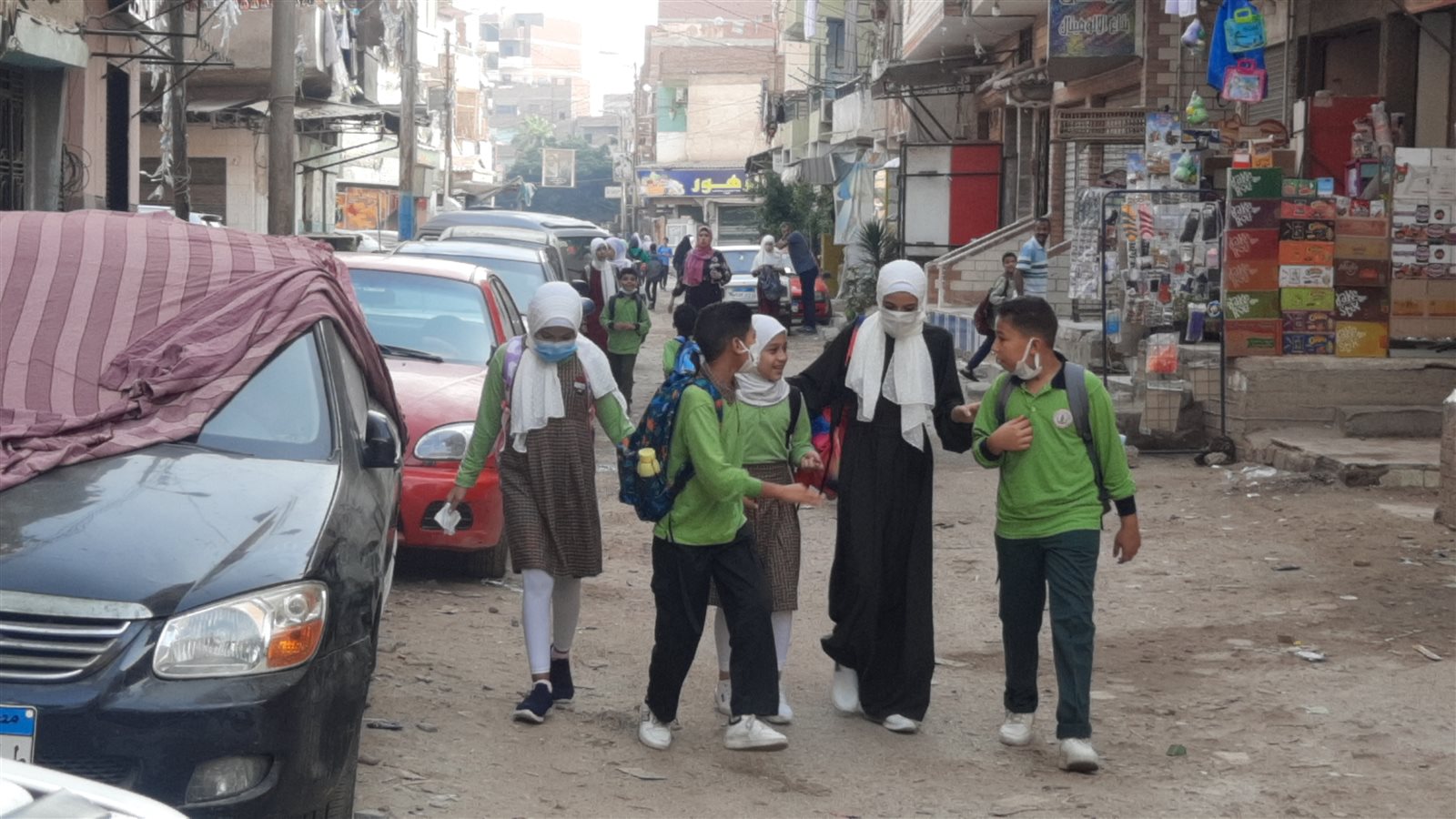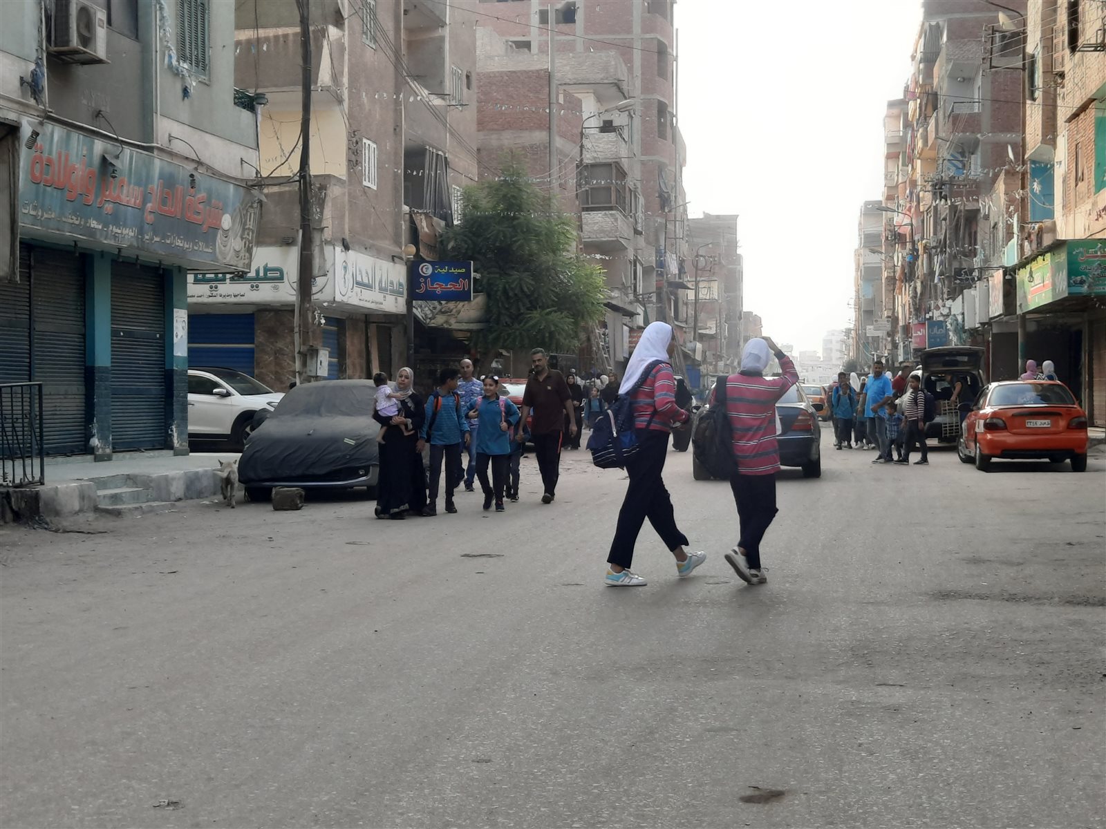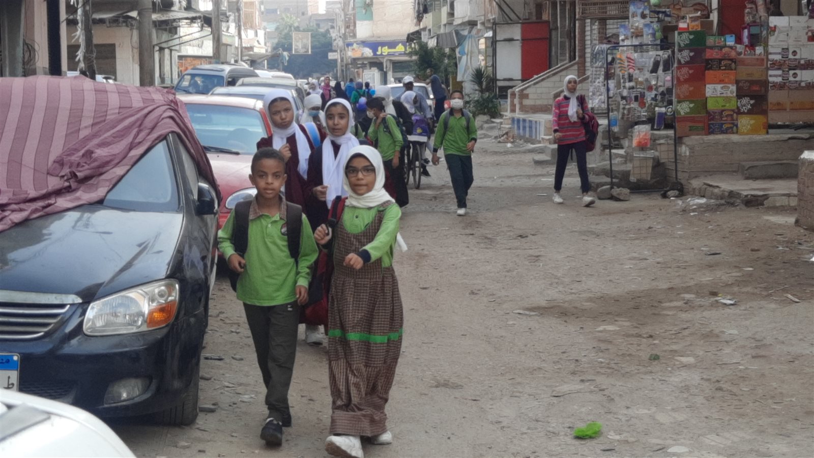 حيث خرج الطلاب بصحبة أولياء أمورهم منذ الساعة السابعة صباحا من منازلهم متوجهين إلى المدارس؛ مما أدى إلى ازدحام الشوارع بالمارة، وزيادة عدد السيارات وتكدسها بالشوارع.
