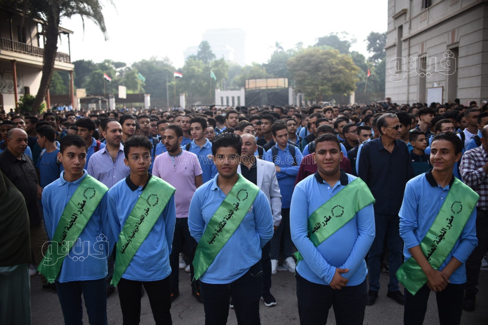 وحرص محافظ الجيزة، اللواء أحمد راشد، علي حضور طابور الصباح وأداء الطلاب لتحية العلم بأ ول أيام انتظام العام الدراسي الجديد.