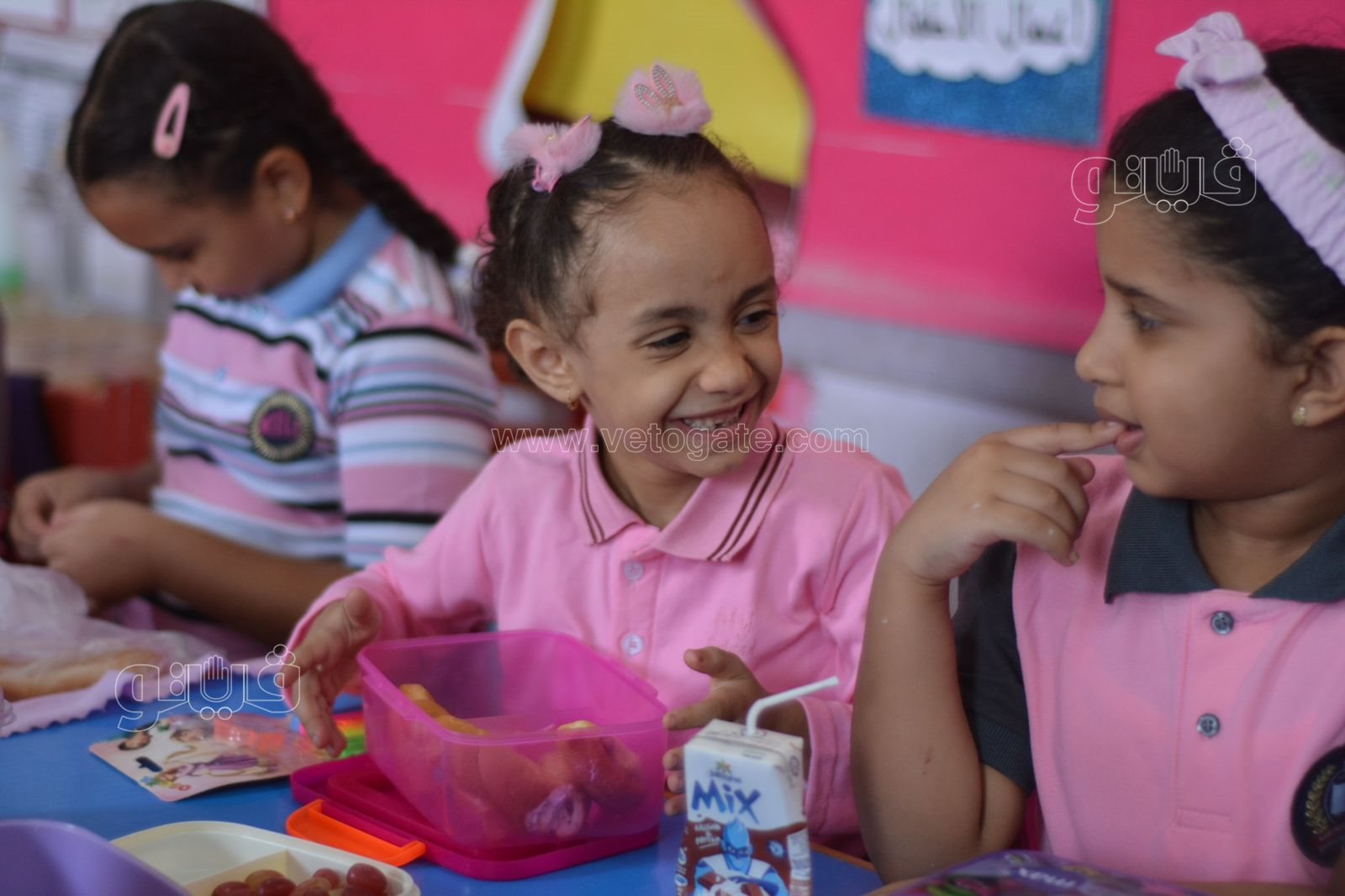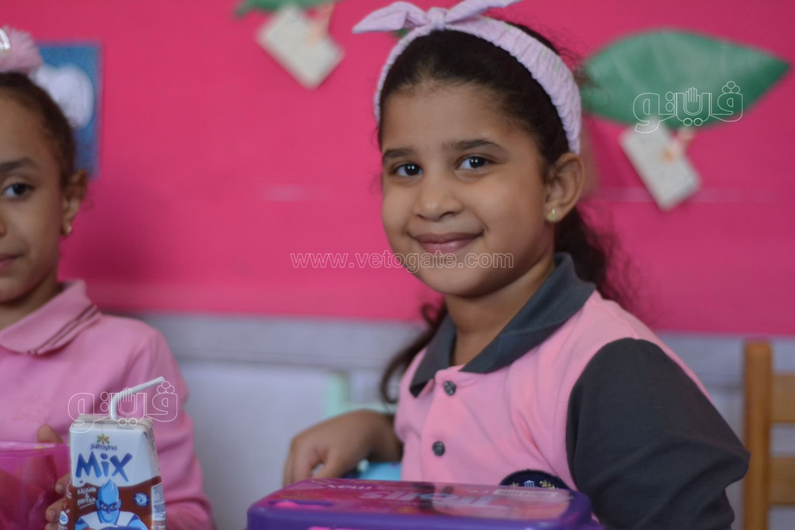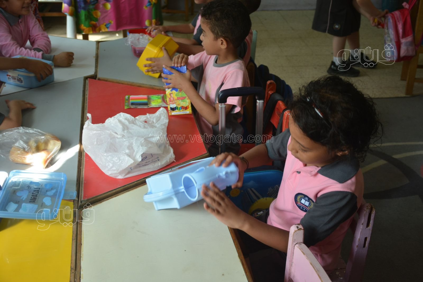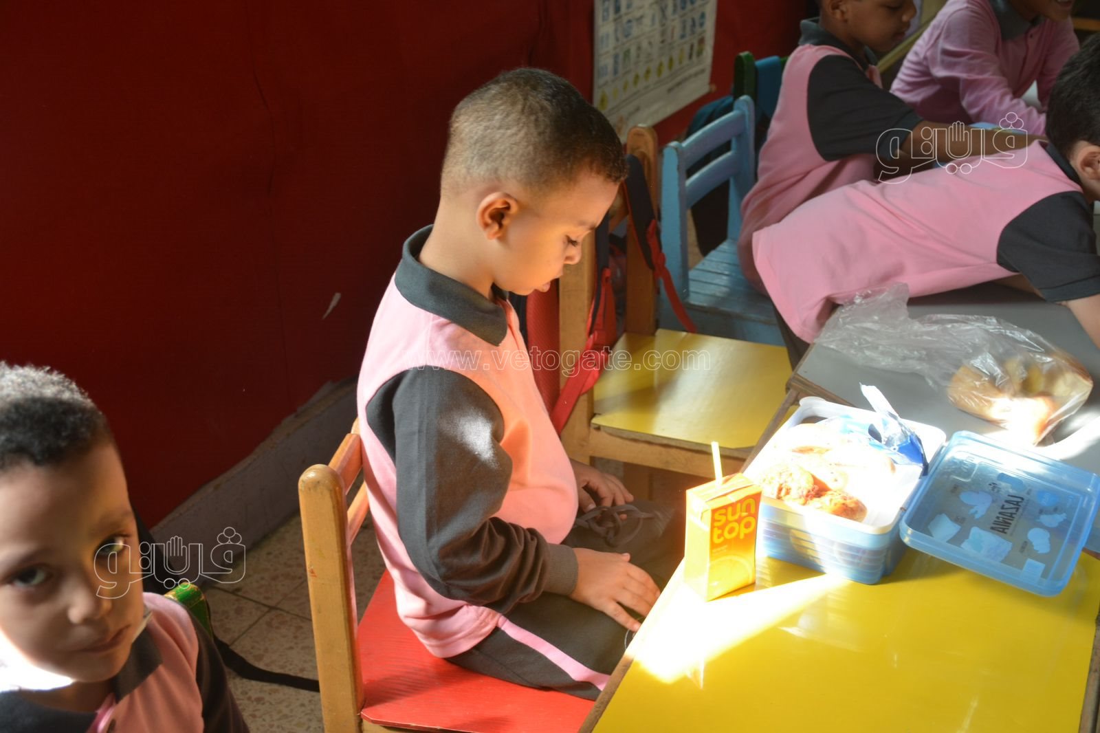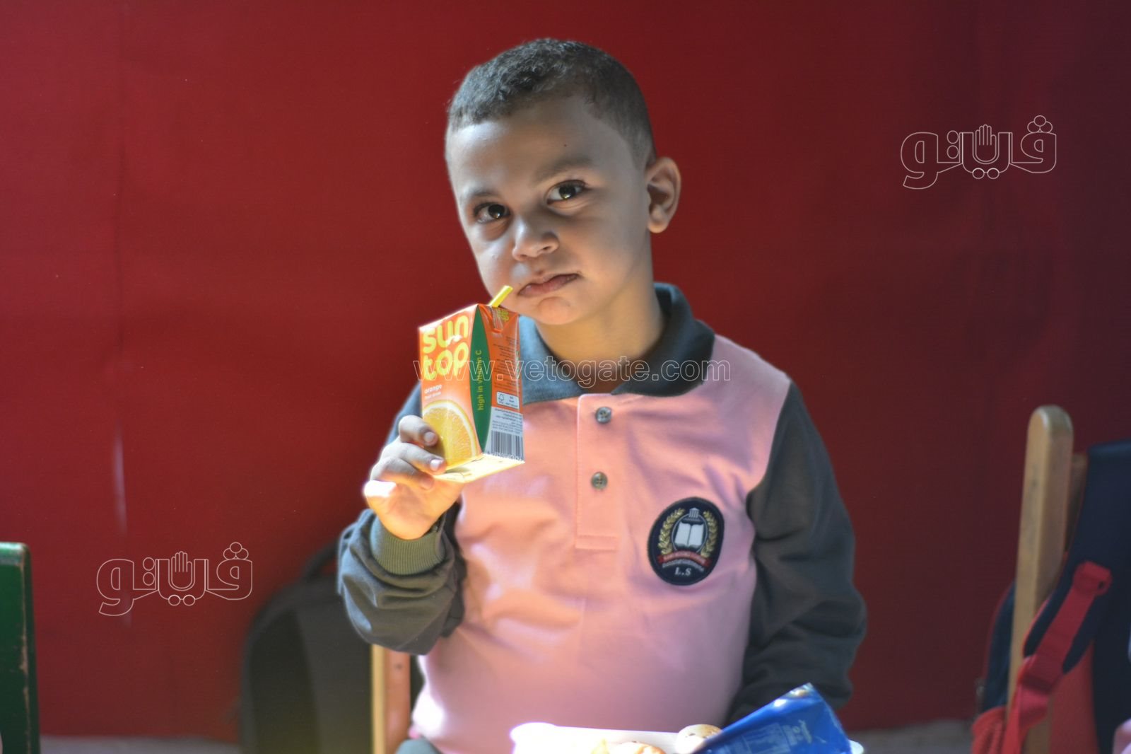 ورصدت عدسة فيتو حرص إدارة المدرسة على تشجيع الأطفال على تناول وجبة الإفطار الخاصة بهم وإخراج "اللانش بوكس"، وشرب العصير، وذلك حرصا منهم على صحتهم.