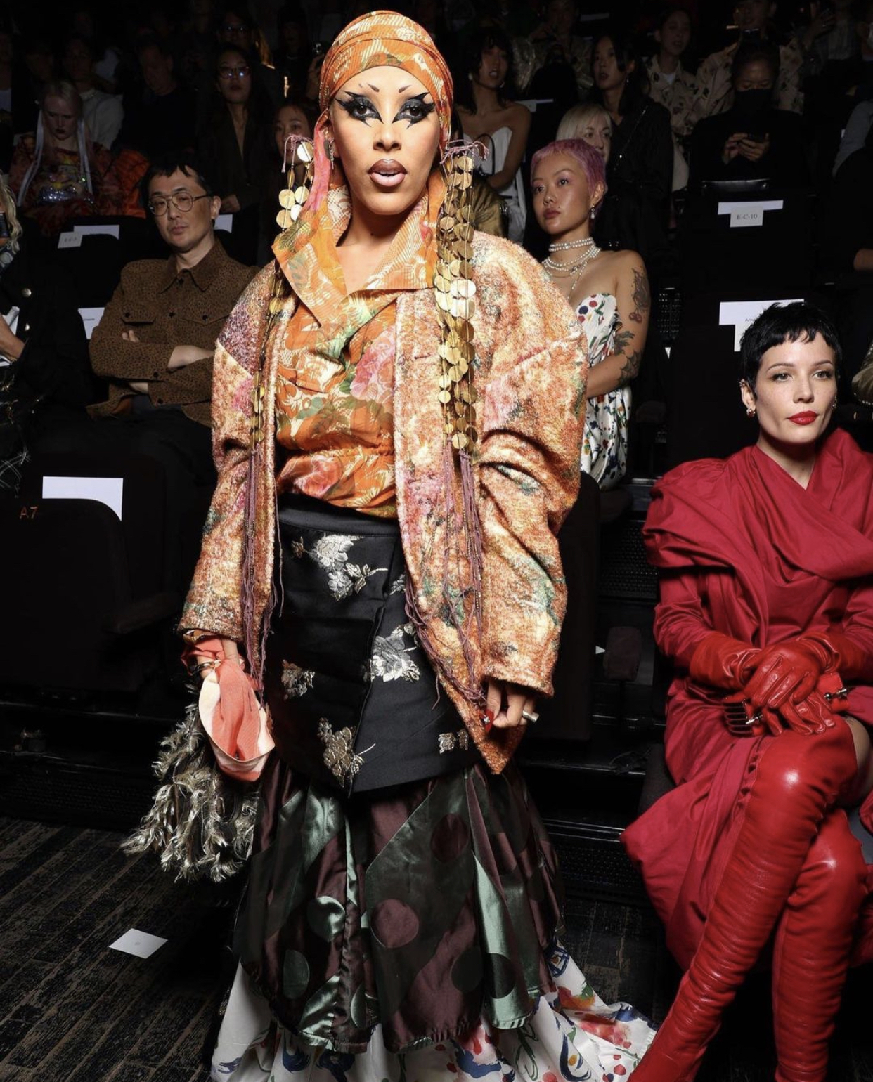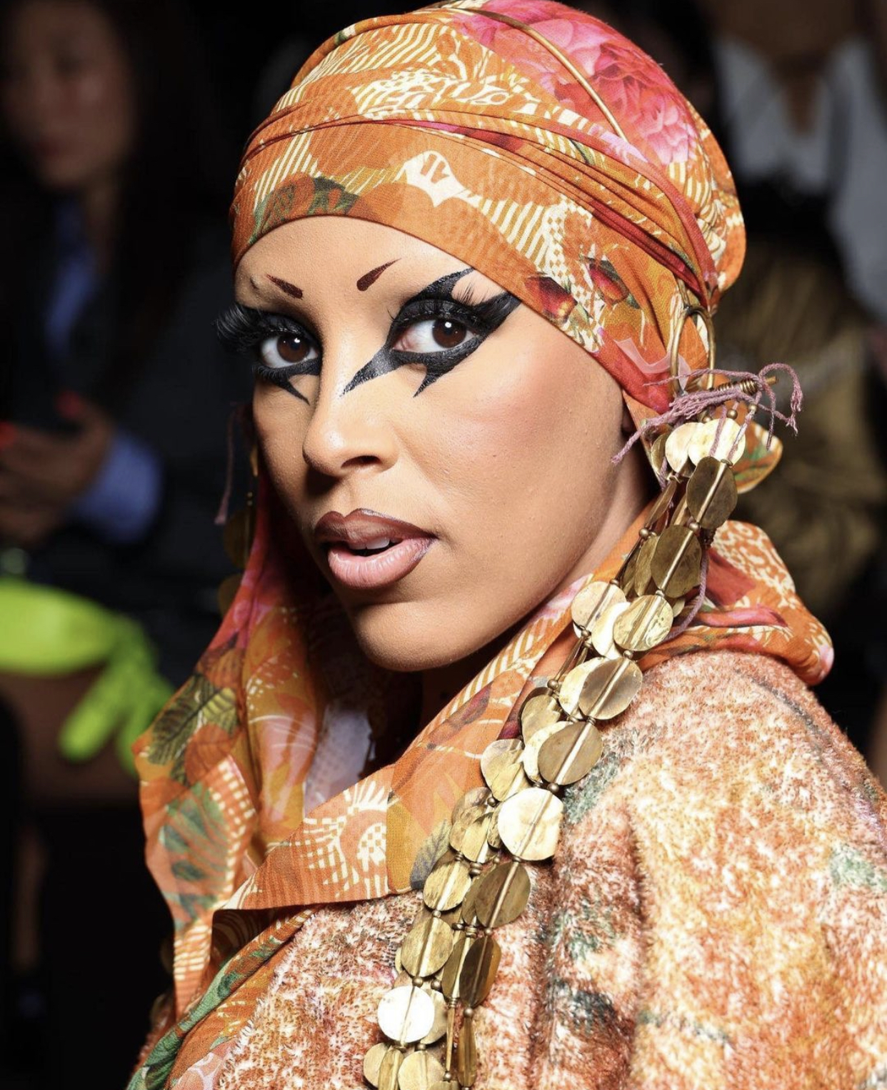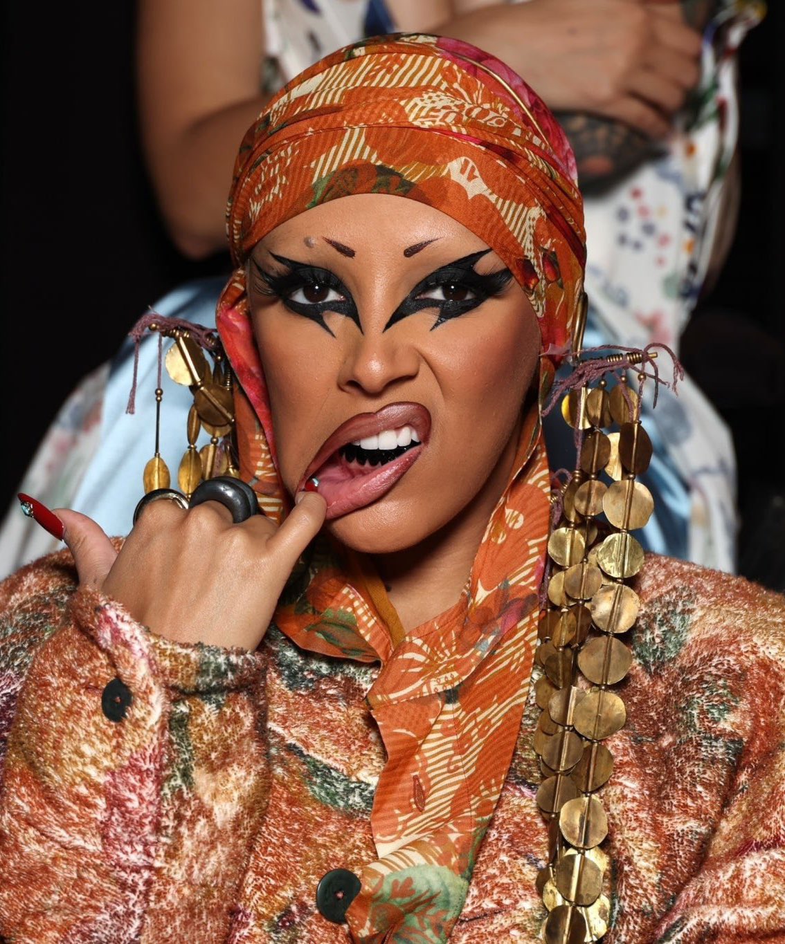 ظهرت المغنية المثيرة للجدل دوجا كات، بإطلالات غريبة ضمن فاعليات أسبوع الموضة في باريس، وارتدت في إحدى الفاعليات ملابس غريبة بألوان زاهية وحجاب للرأس، وشراب طويل يصل إلي ما فوق الركبة، ووضعت مكياج غريب باللون الأسود حول عيونها، هو ما جعلها حديث الصحافة والإعلام.
