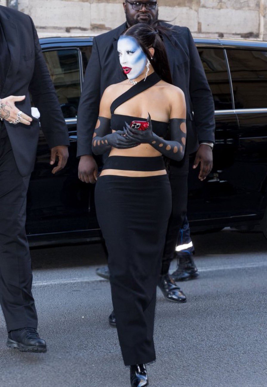 وفي فاعلية أخرى ضمن أسبوع الموضة في باريس، ظهرت دوجا كات كأنها كائنا فضائيا، حيث طلت وجهها بأكمله باللون الأبيض والأزرق، وأرتدت فستان أسود عاري.