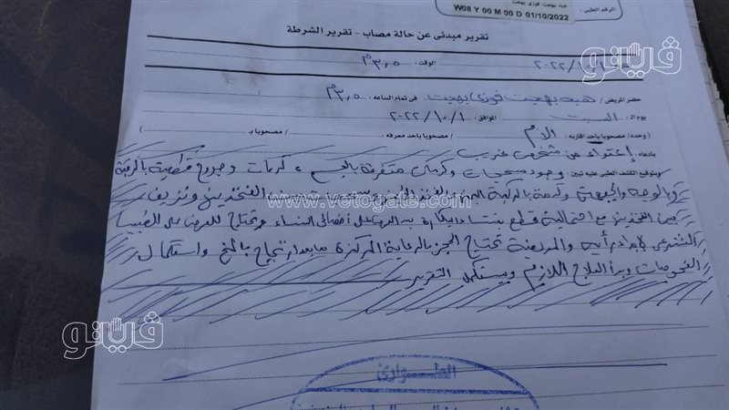 حصلت فيتو على نسخة من التقرير الطبي بالطفلة التي اتهمت أسرتها أحد جيرانها بالاعتداء الجنسي عليها بالإضافة لاعتدائه عليها بالضرب، وتم نقلها لمستشفى العربي.