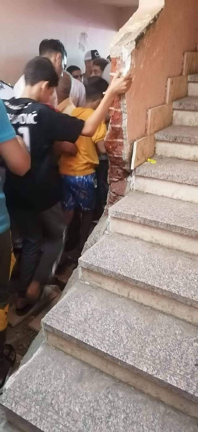 وتبين من المعاينة حدوث تدافع بين الطالبات علي سلم المدرسة مما أدى إلى سقوط جزء من سور السلم.