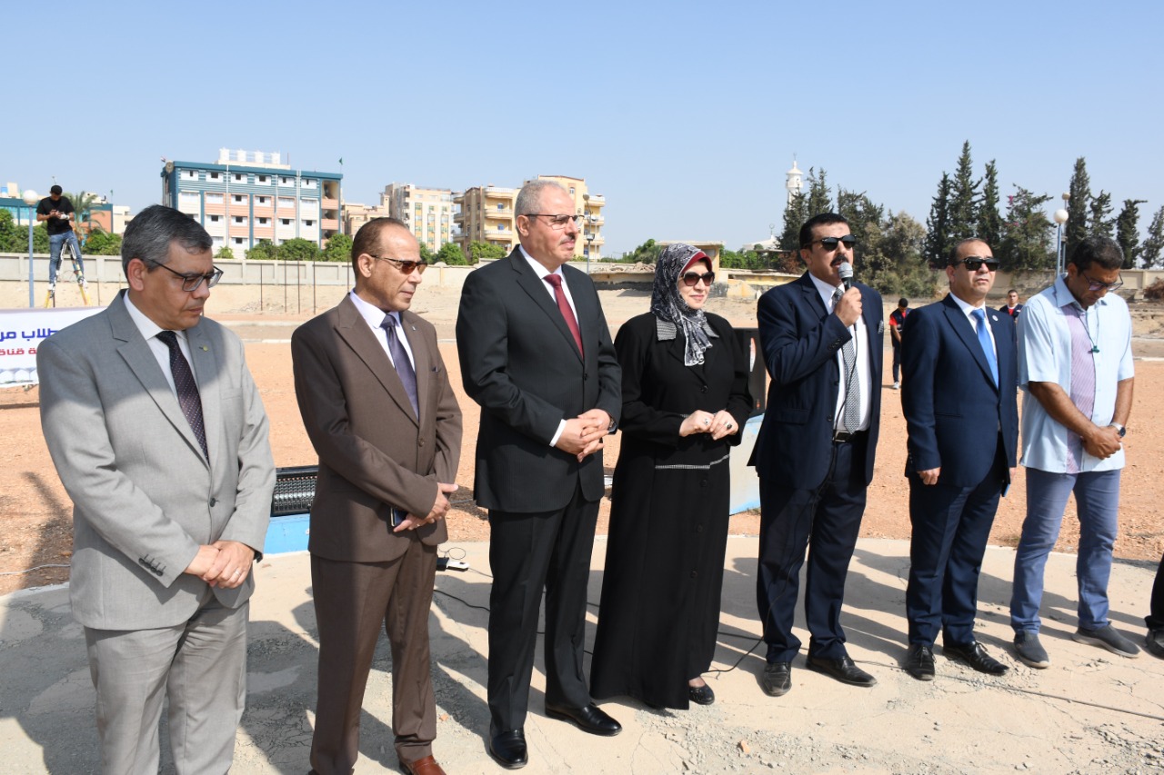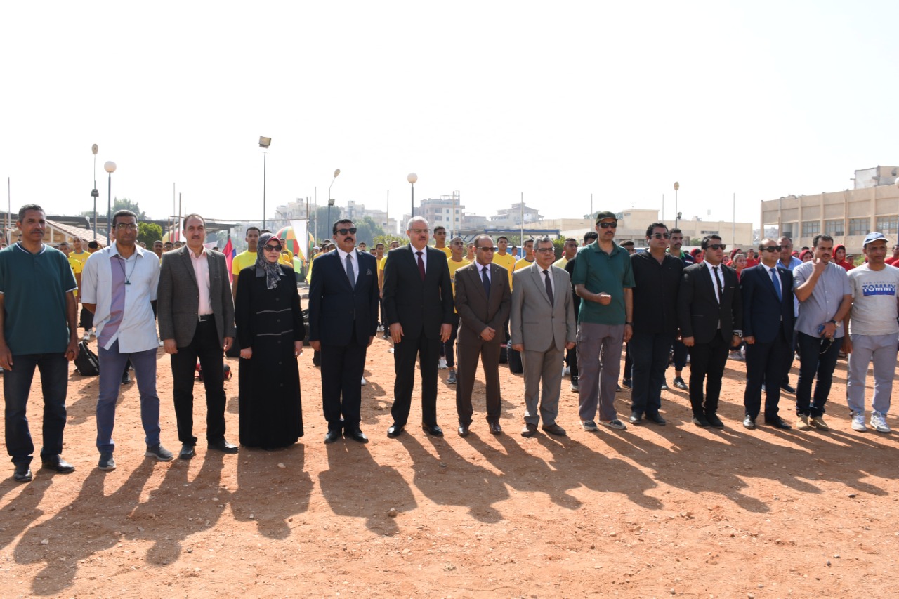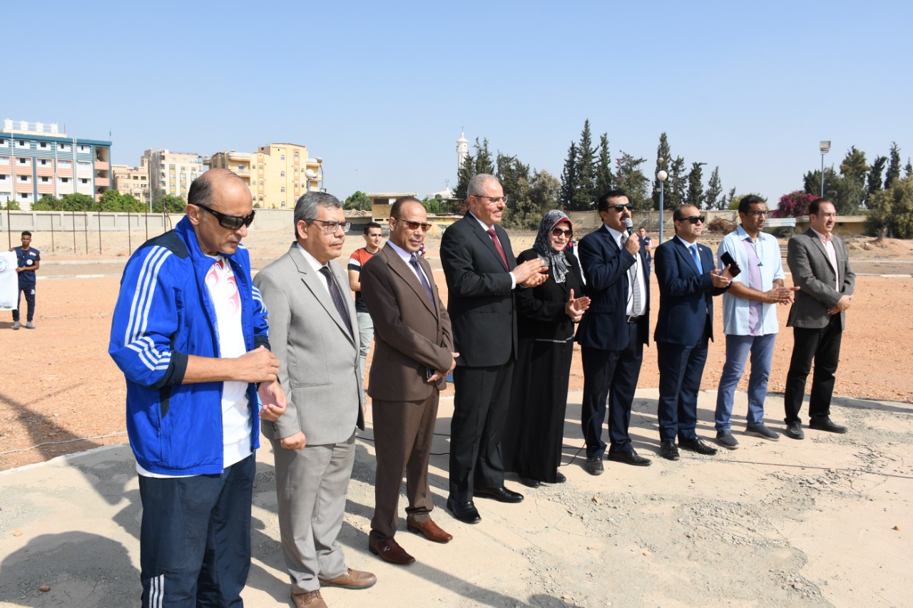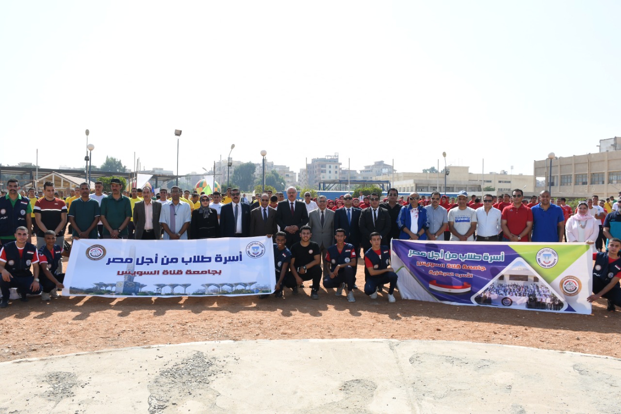 بمشاركة 1050 طالبا.. اصطفاف قيادات جامعة قناة السويس لتحية العلم بكلية التربية الرياضية|صور