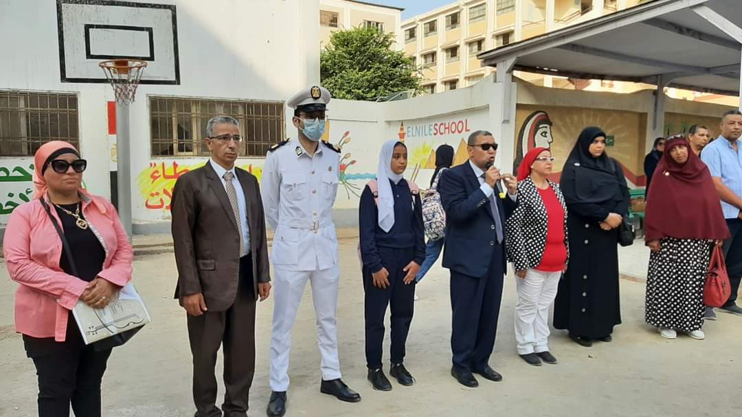 وشاركت القيادات الأمنية طابور الصباح بحضور "علي عبد الرؤوف" وكيل وزارة التربية والتعليم وعبد العليم جمعة وكيل المديرية ومديري عموم المديرية والعلاقات العامة والإعلام والعديد من القيادات التعليمية، مقدمين التهنئة للطلاب ببدء العام الدراسي الجديد وحرصت قيادات الشرطة على اصطحاب أبناء الشهداء إلى فصولهم.