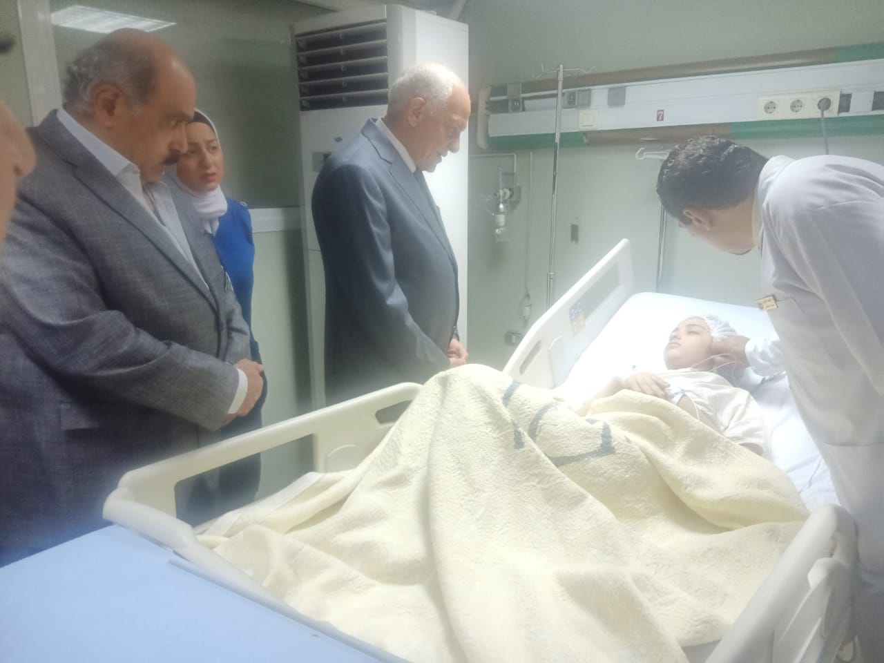 محافظ الجيزة يزور التلاميذ المصابين في انهيار سور سلم مدرسة المعتمدية | صور