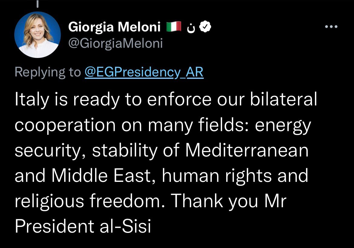 جورجيا ميلونى ترد على تهنئة الرئيس السيسي