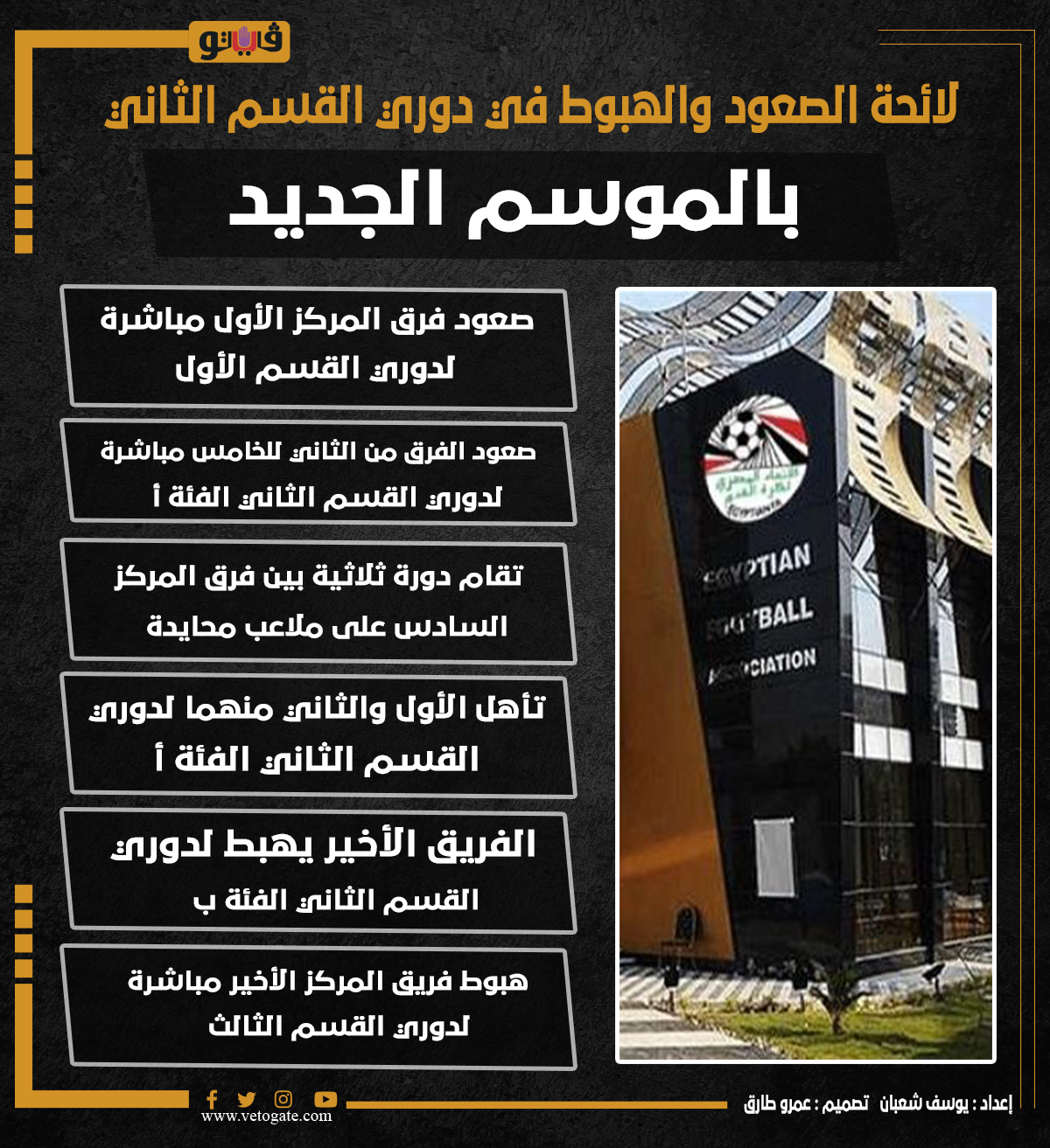 لائحة الصعود والهبوط في دوري القسم الثاني بالموسم الجديد | إنفوجراف الإثنين 03/أكتوبر/2022 - 01:03 ص 10/3/2022 1:03:16 AM لائحة الصعود والهبوط في دوري القسم الثاني بالموسم الجديد يوسف شعبان شارك طباعة 18 حجم الخط شارك طباعة دوري القسم الثاني لائحة الصعود والهبوط بدوري القسم الثاني إتحاد الكرة المصرى تطبيق دوري المحترفين دوري القسم الثالث