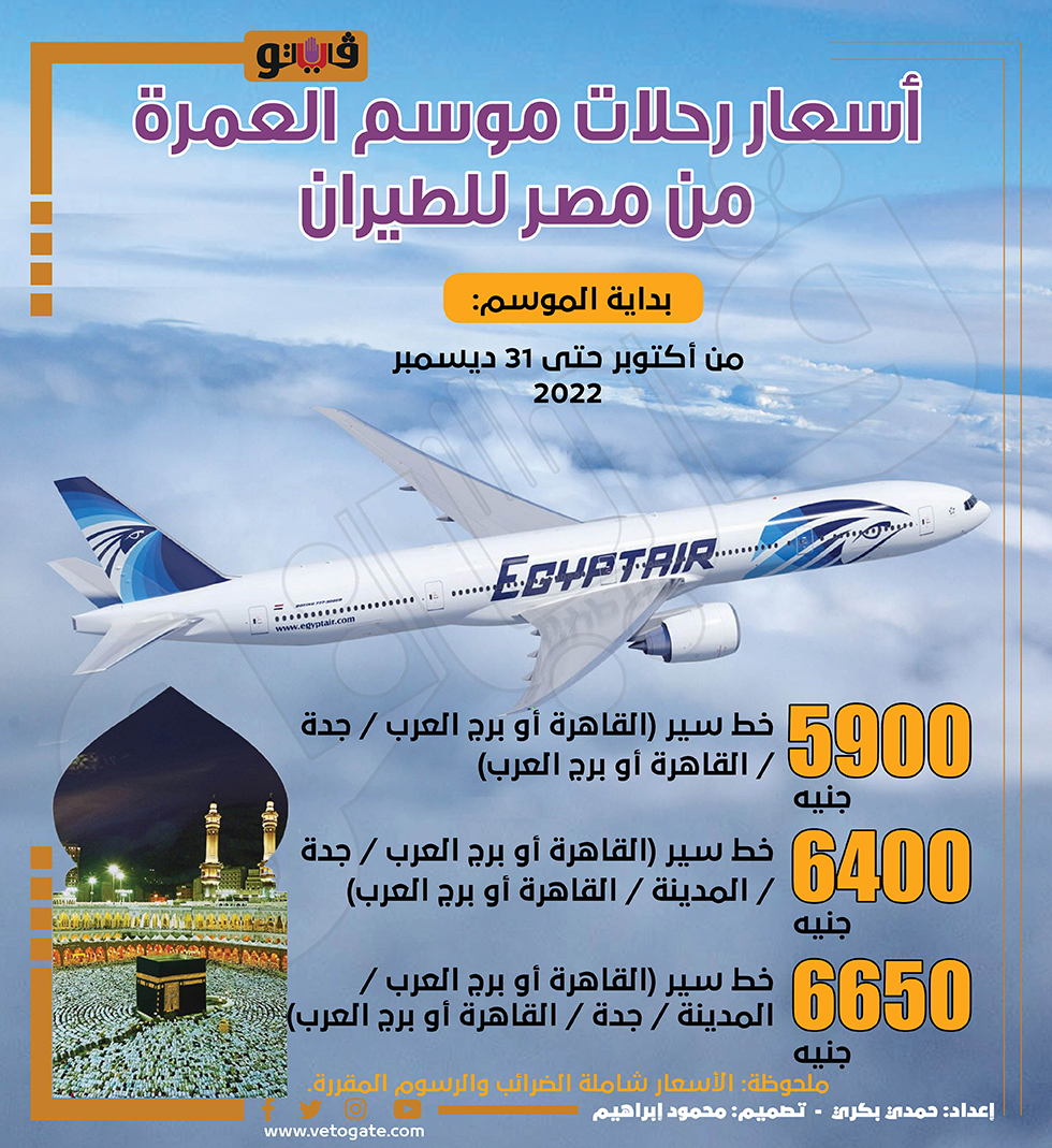 أسعار رحلات موسم العمرة من مصر للطيران | إنفوجراف الإثنين 03/أكتوبر/2022 - 06:35 م 10/3/2022 6:35:02 PM مصر للطيران حمدي بكرى شارك طباعة 18 حجم الخط شارك طباعة مصر للطيران أسعار رحلات موسم العمرة أسعار تذاكر العمرة اسعار تذاكر مصر للطيران اخبار مصر للطيران
