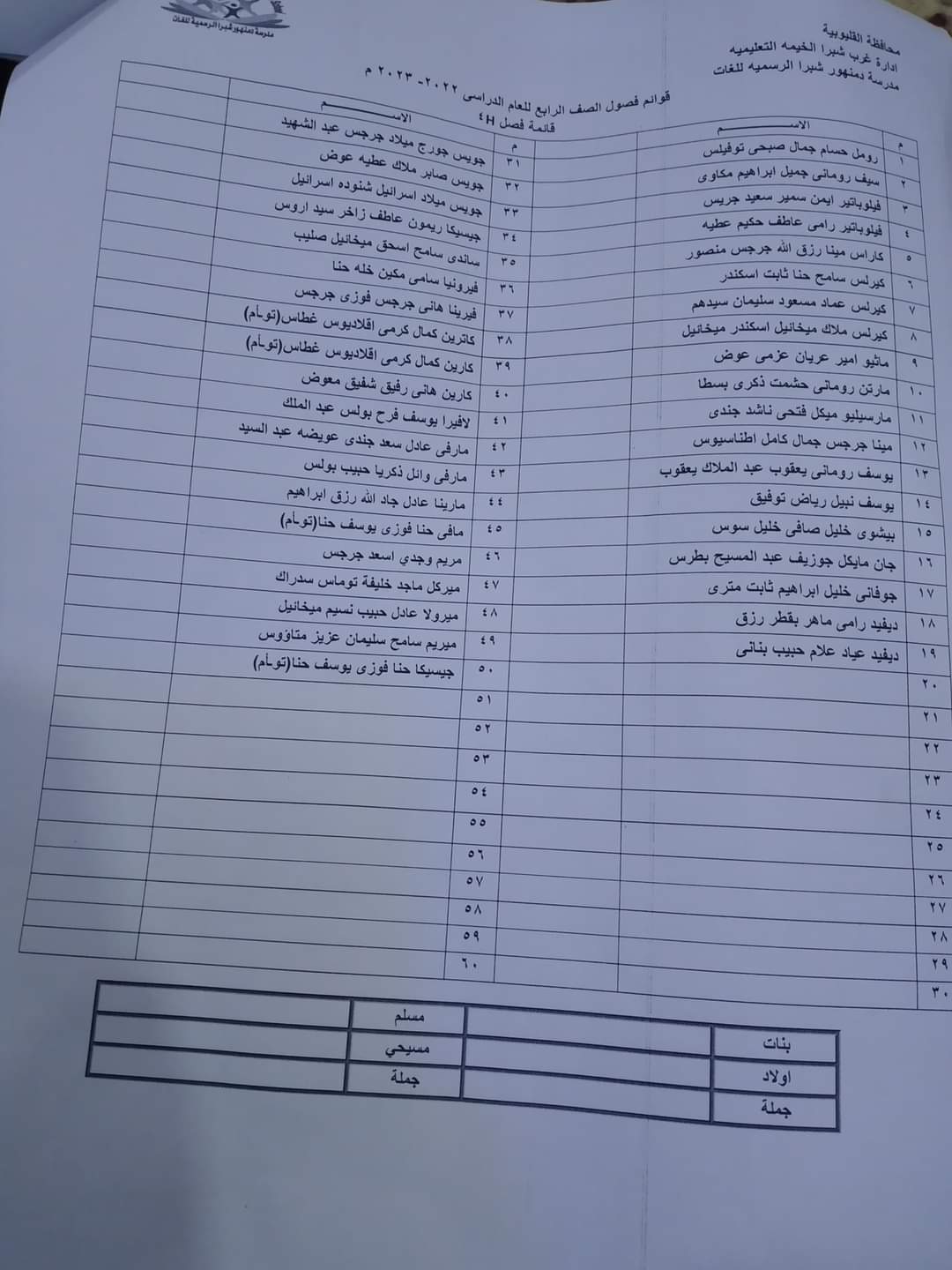 كشفت وزارة التربية والتعليم والتعليم الفني، حقيقة الصورة المتداولة عبر مواقع التواصل الاجتماعي المختلفة، والخاصة بكشف يضم أسماء 50 طالبًا مسيحيا تم تجميعهم في فصل واحد.